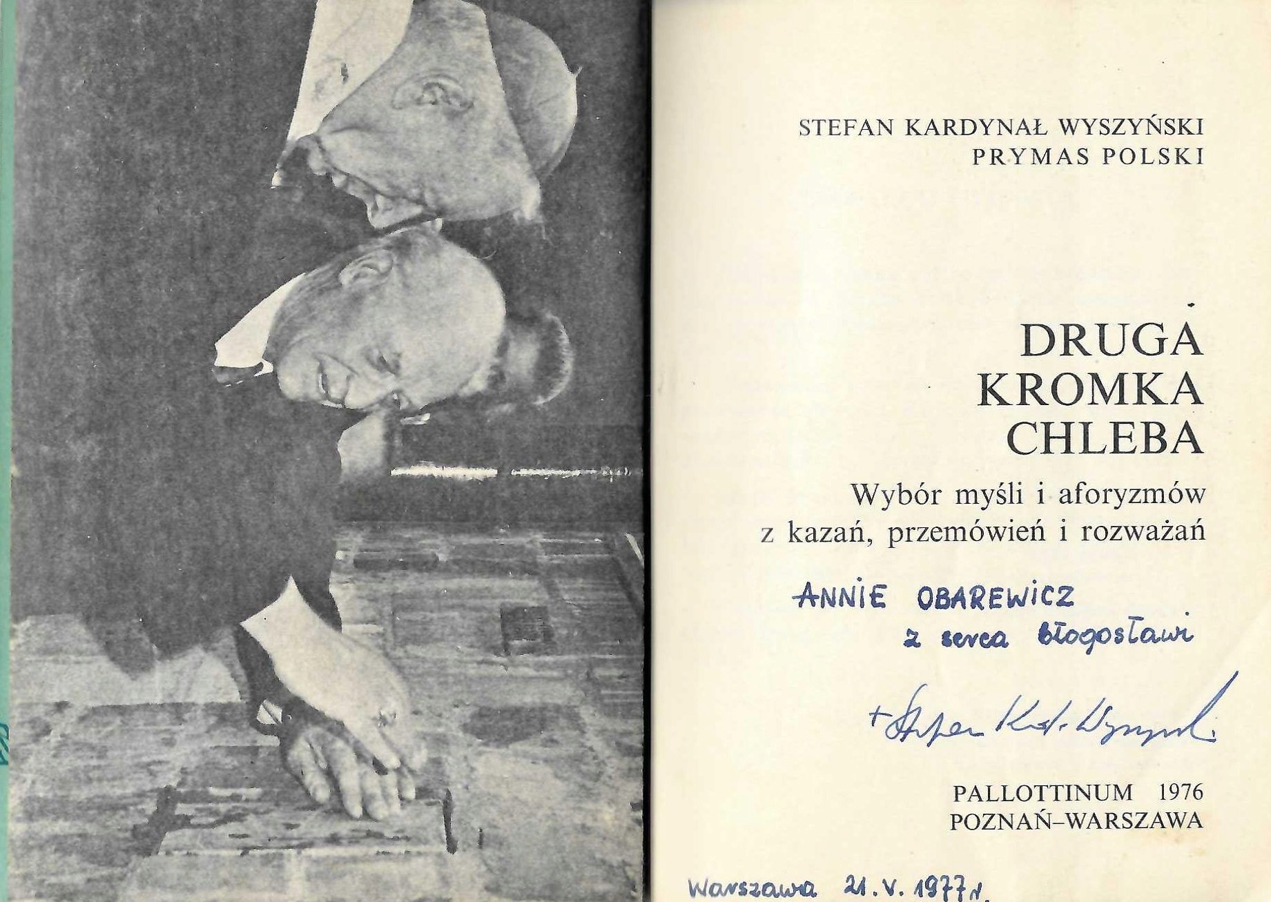 Kardynał Stefan Wyszyński * Druga kromka chleba AUTOGRAF