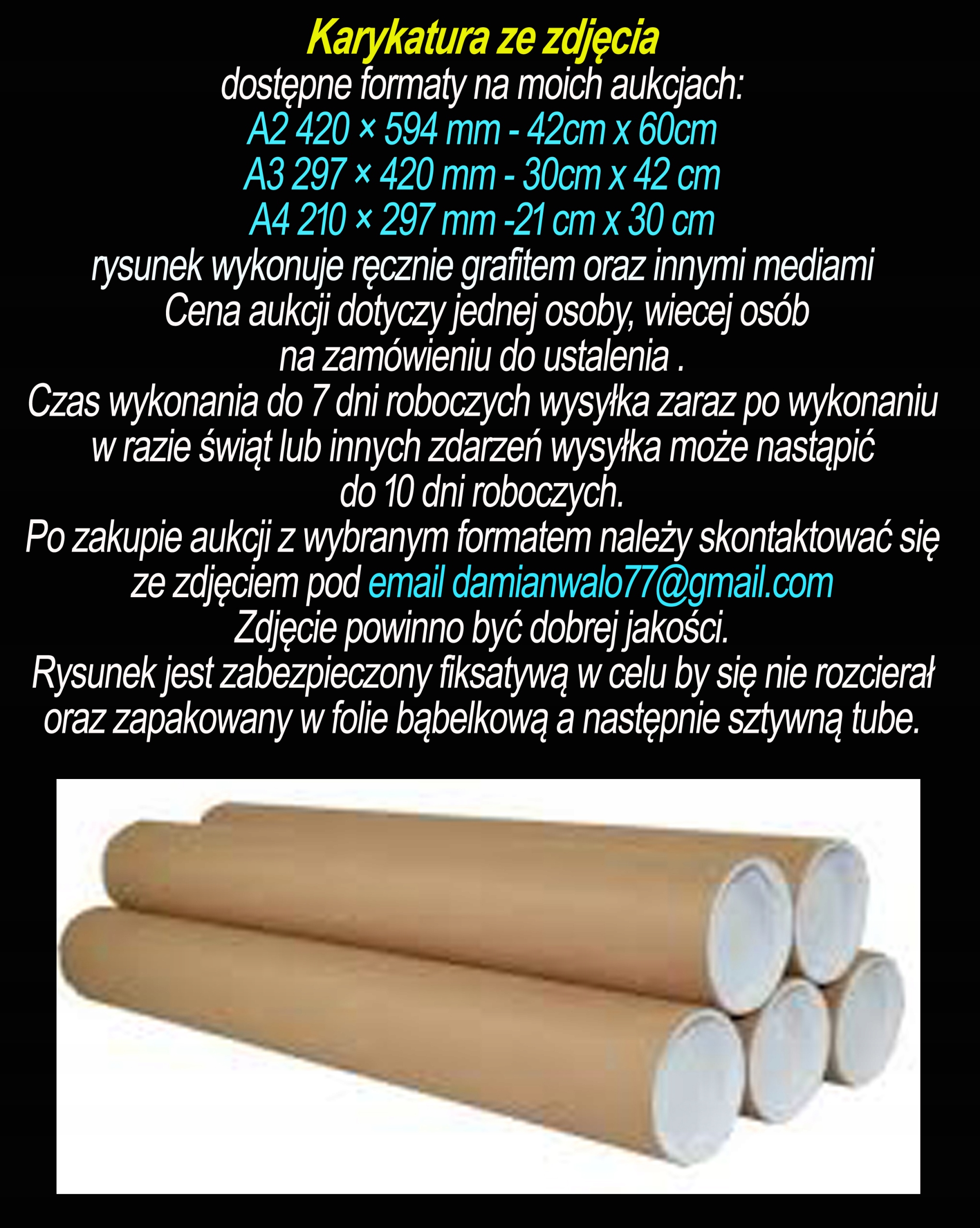 Просматривая «Карикатура с фото для подачи A3 1 человек», вы можете быть уверены, что данный товар из каталога «Рисунок» будет доставлен из Польши и проверен на целостность. В цене товара, указанной на сайте, учтена доставка из Польши. Внимание!!! Товары для Евросоюза, согласно законодательству стран Евросоюза, могут отличаться упаковкой или наполнением.
