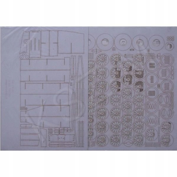 Вирізані лазером елементи моделі, які в оригінальному вирізі потребують склеювання відповідної товщини картону. Ці елементи точно вирізаються лазерним плотером відразу в картоні відповідної товщини і вимагають лише виштовхування з аркуша пальцем (вони з'єднані лише маленькими з'єднувачами).