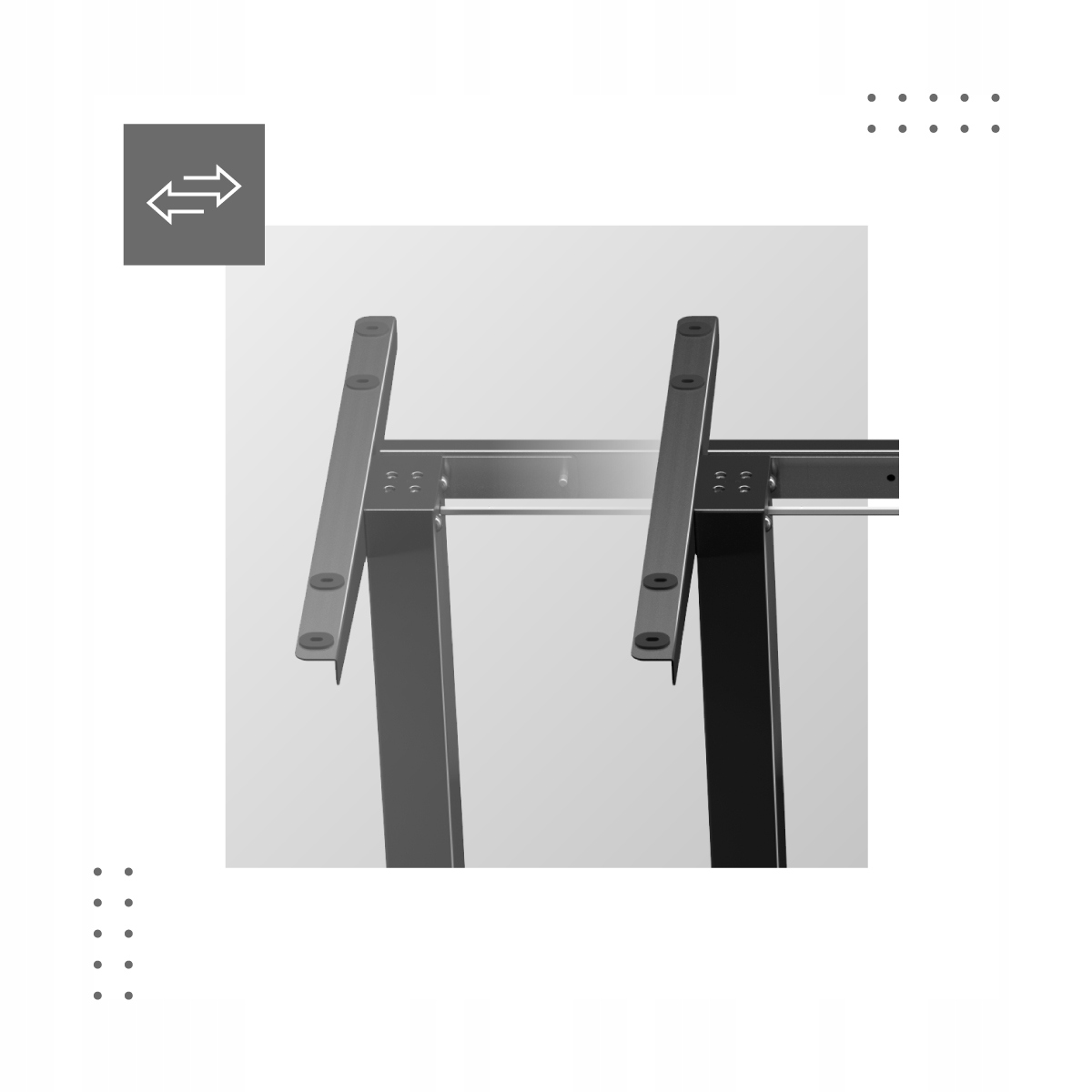 Завдяки регульованій ширині рами ви можете створити простір, який вам подобається - ви можете налаштувати розмір столу відповідно до своїх потреб та умов проживання. Рамка підходить для стільниць шириною від 90 см до 160 см.