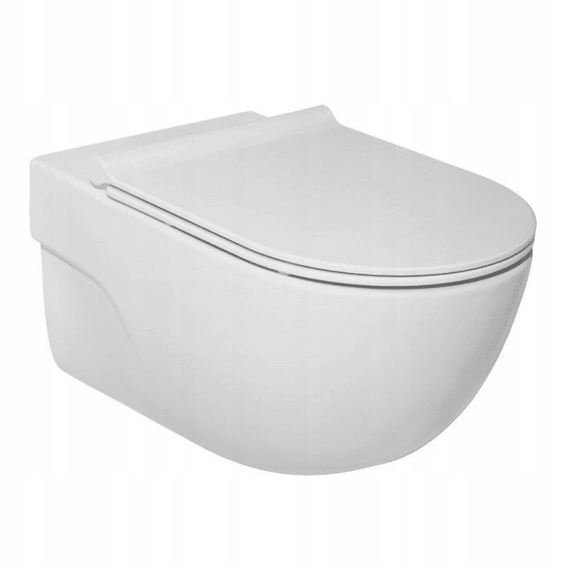 Унітаз без оправи - Безободковий, з прихованою системою встановлення, підходить для змиву 4/2, 4,5/3 та 6/3 л. Сидіння з дюропласта, що повільно закривається, з функцією швидкого знімання.