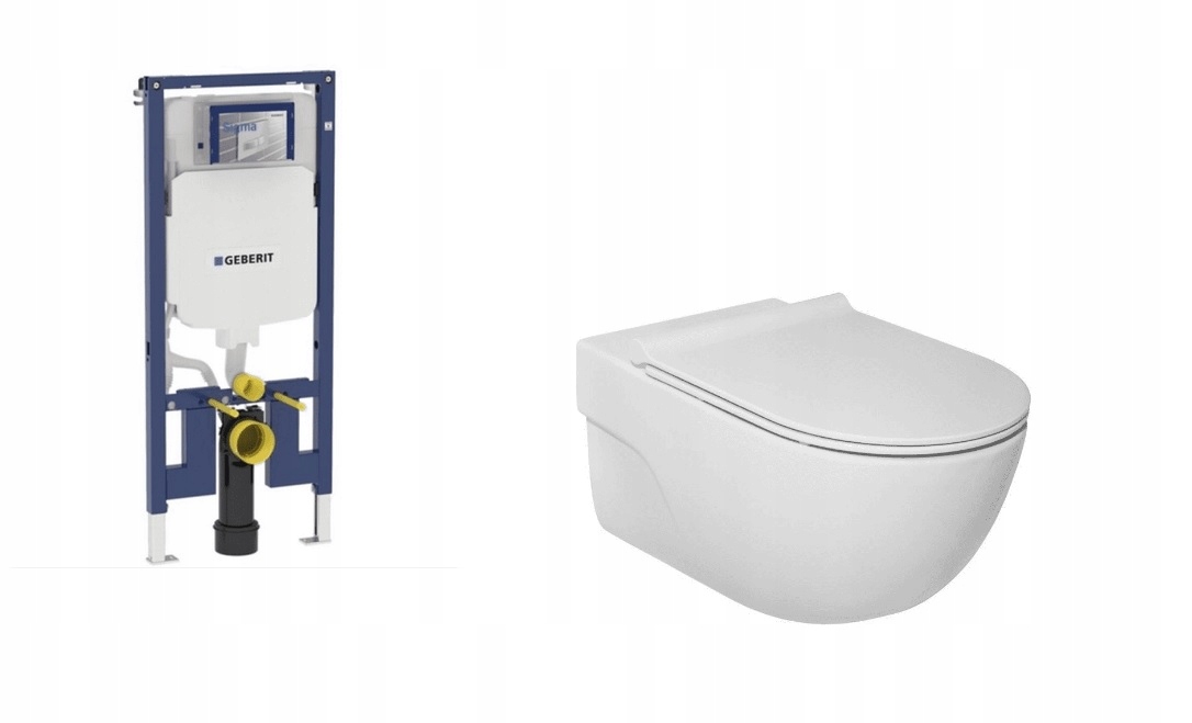Набір прихованої рами Geberit Slim 8 см + підвісний унітаз Compacto Rimless із сидінням SLIM Roca Meridian з м’яким закриванням 48 см + акустична прокладка