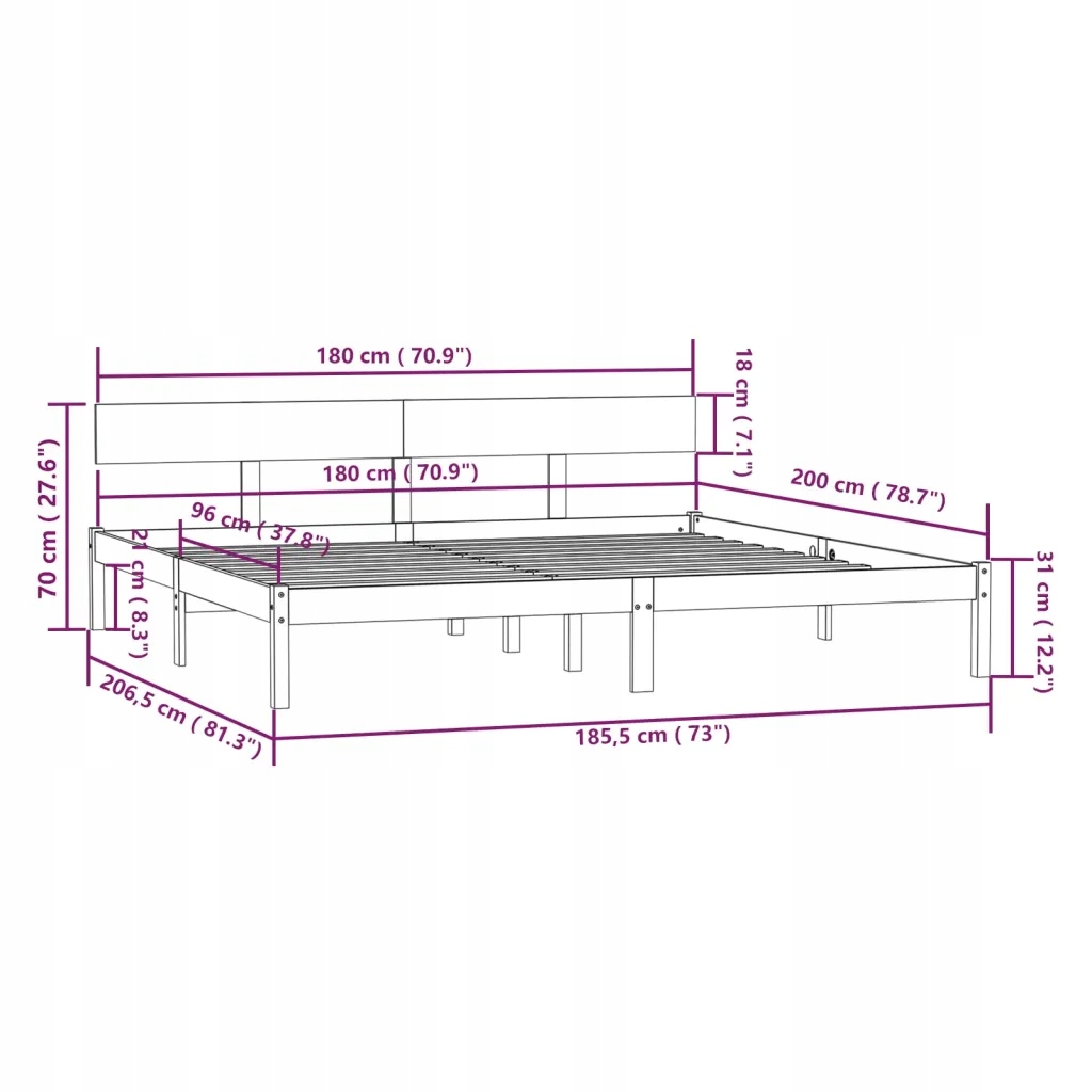 - Розміри відповідного матраца: 180 x 200 см (Ш x Д); матрац не входить