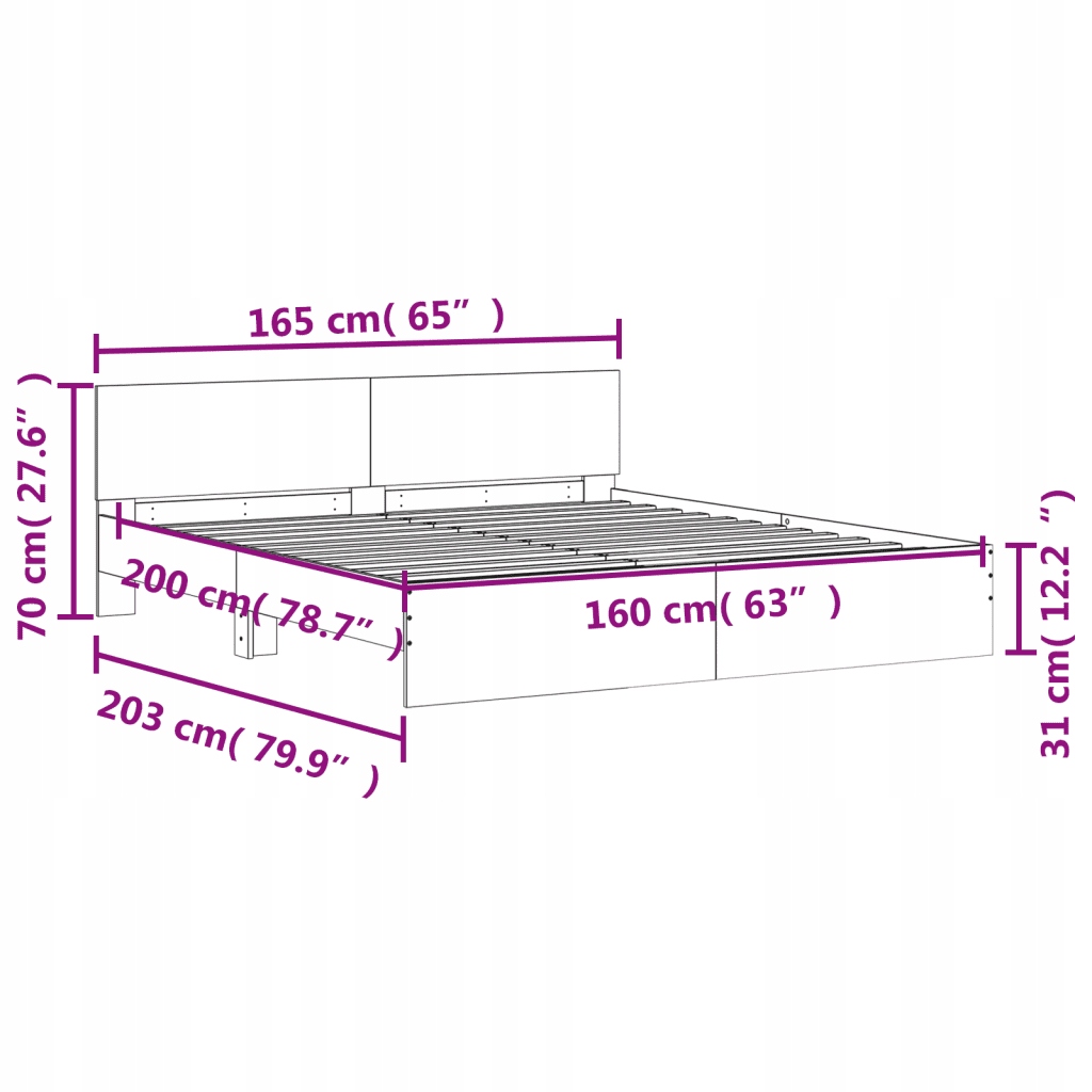 - Розміри відповідного матраца: 160 x 200 см (ширина х довжина); матрац не входить