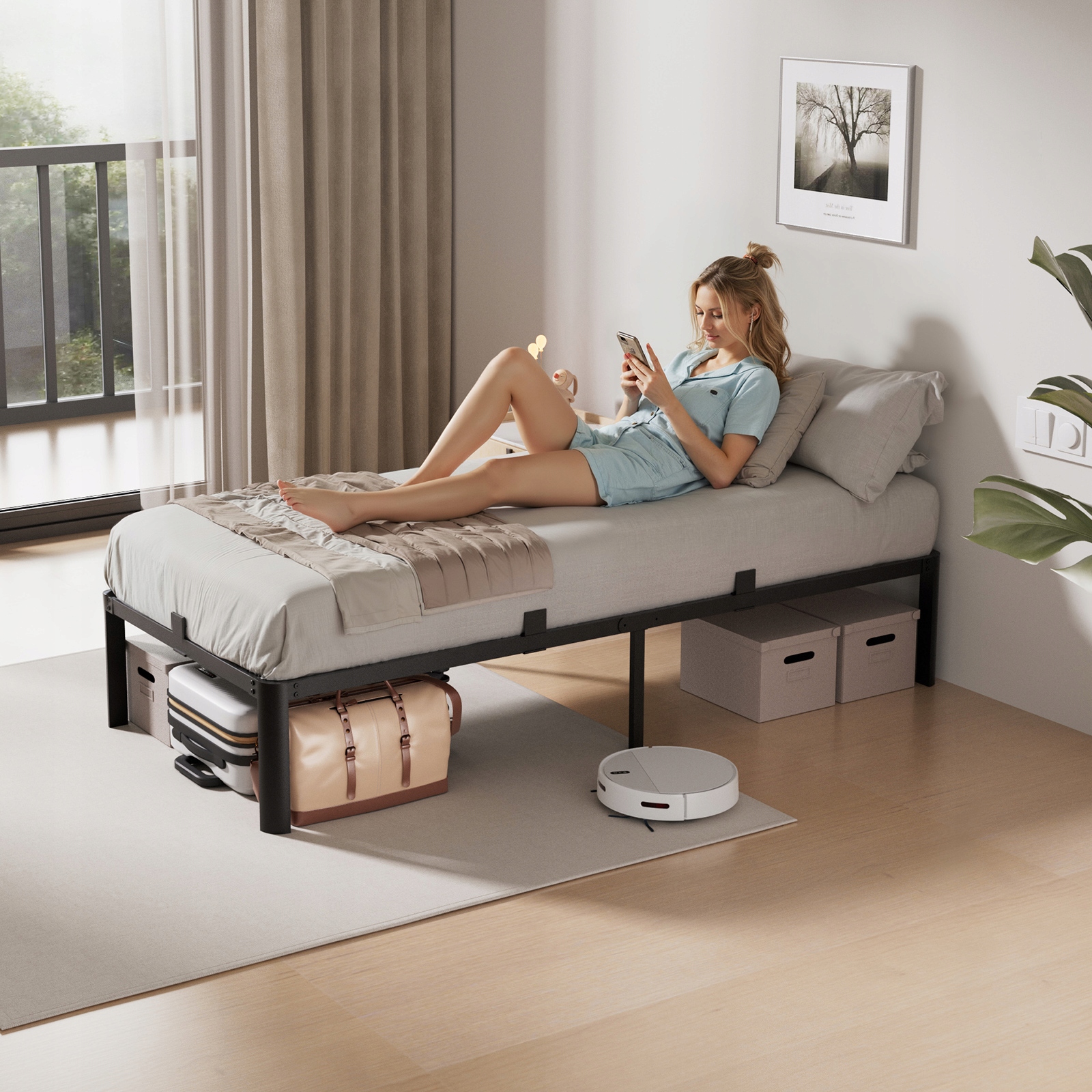 3. Стійка конструкція: цей каркас ліжка має 14 рядів міцних металевих планок, розташованих на відстані приблизно 4 дюйми одна від одної для виняткової підтримки, усуваючи потребу у пружинному матраці. Це Міцний металевий каркас двоспального ліжка витримує до 800 фунтів, забезпечуючи тривалу міцність.