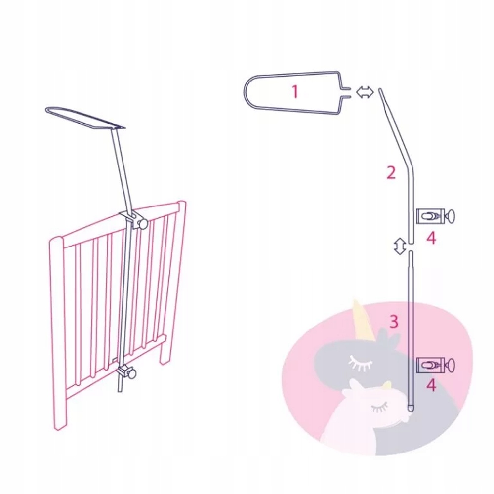 ✅Рамка зручно кріпиться до рами ліжечка за допомогою двох прикручених ручок.