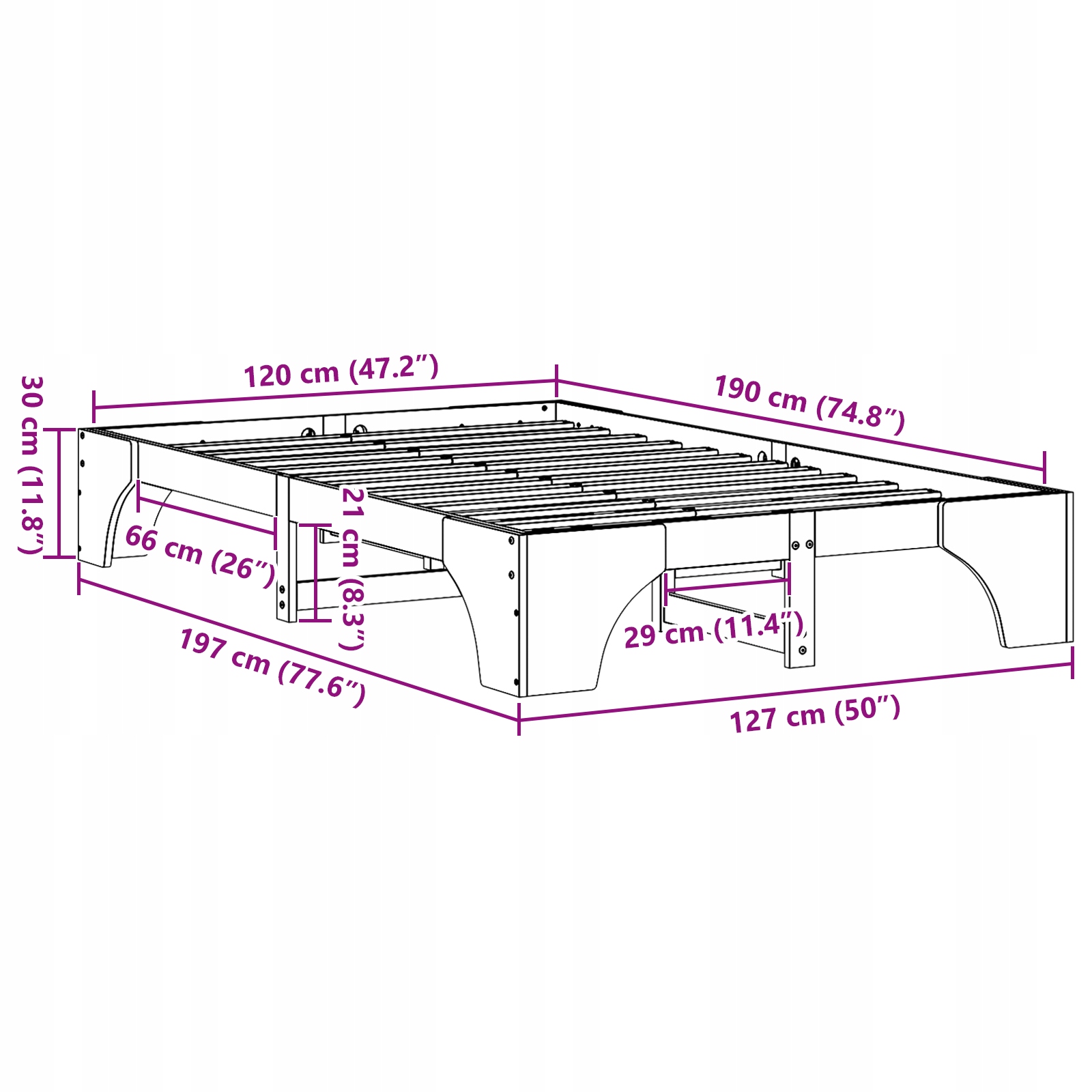 Каркас ліжка з масиву сосни, 120x190 см, бежевий колір