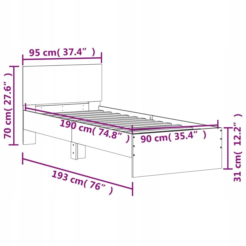 Каркас ліжка з узголів’ям, коричневий дуб, 90x190 см Lumarko!