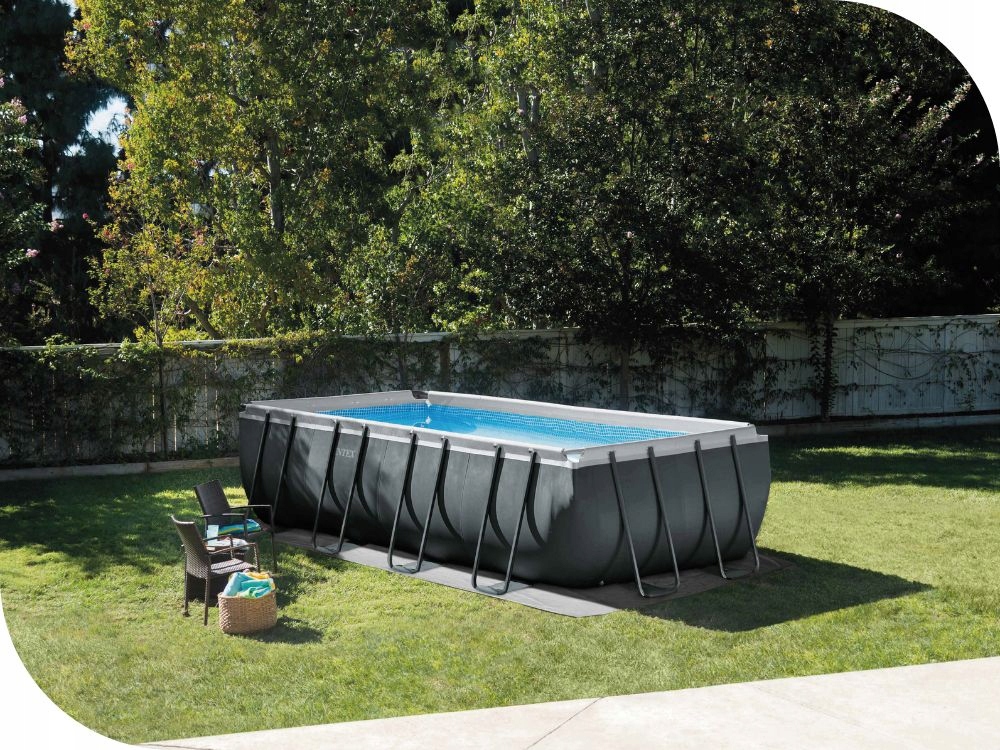 1. FRAME POOL-Басейн Ultra XTR Rectangular Frame відIntexрозміром549 см x 274 см x 132 см- місткість17 203 л.Виробник вказує, що він наповнений водою на максимальному рівні90%. Час складання займає приблизно 60 хвилин.