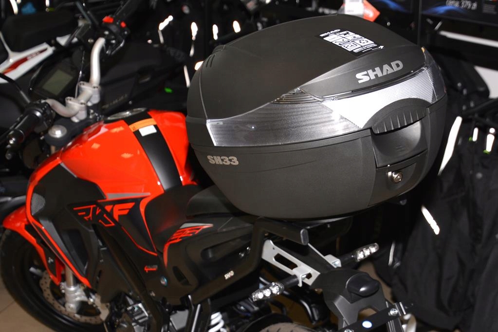 Рамка, присвячена мотоциклам KEEWAY RKF 125 і чохлам SHAD. Ми можемо легко встановити будь-який корпус, обладнаний монтажною пластиною, на цю раму