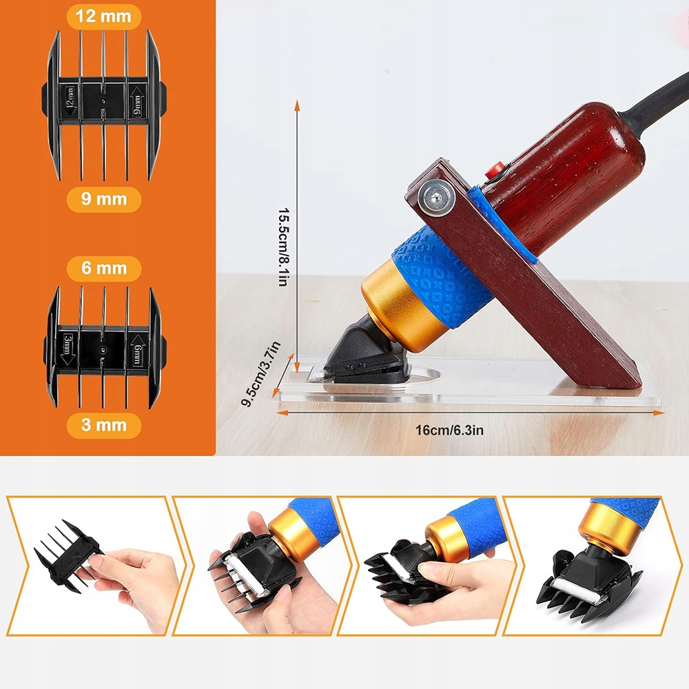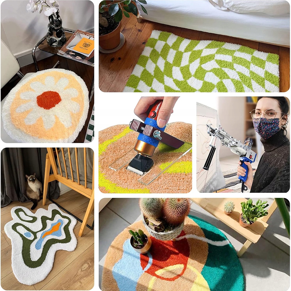 - Тиммер для різання скупчень килима з посібником з ножицями встановлюється на прозорому акриловому платформі, що забезпечує легкий контроль та здатність регулювати глибину різання.
