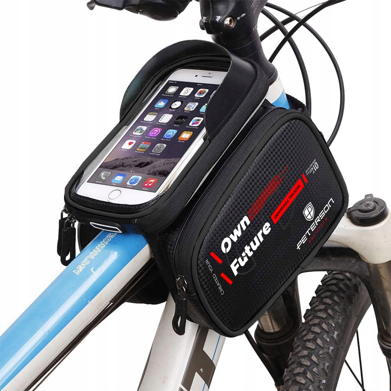 Водонепроникна сумка для велосипедного керма, завдяки в якому можна транспортувати дрібні предмети, такі як ключі, гаманець, навушники. Сумка також оснащена прозорим відділенням для смартфона (максимальна діагональ: 7 дюймів). Кріпиться на кермо за допомогою липучок. Ідеально підходить для кожного любителя двоколісних автомобілів.