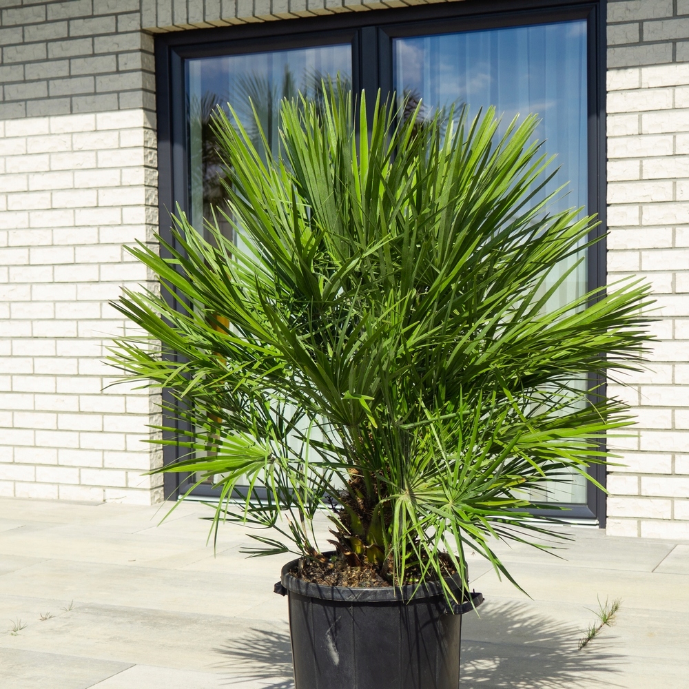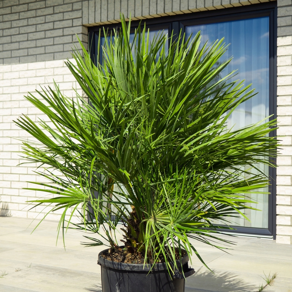 Невисока карликова пальма (лат. Chamaerops humilis) — порівняно невелика пальма, але виростає до 3 метрів у висоту. Це один із двох природних видів, що зустрічаються в Європі. Зазвичай утворює кілька стовбурів з листям, що нагадують величезні віяла. Витримує морози до мінус десятка градусів за Цельсієм! У разі сильних морозів можна накрити його агротканиною та обмотати нагрівальним кабелем або перенести, наприклад, у гараж 🌴