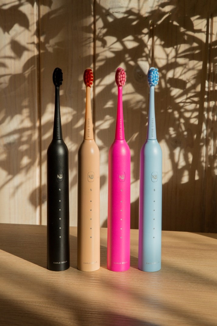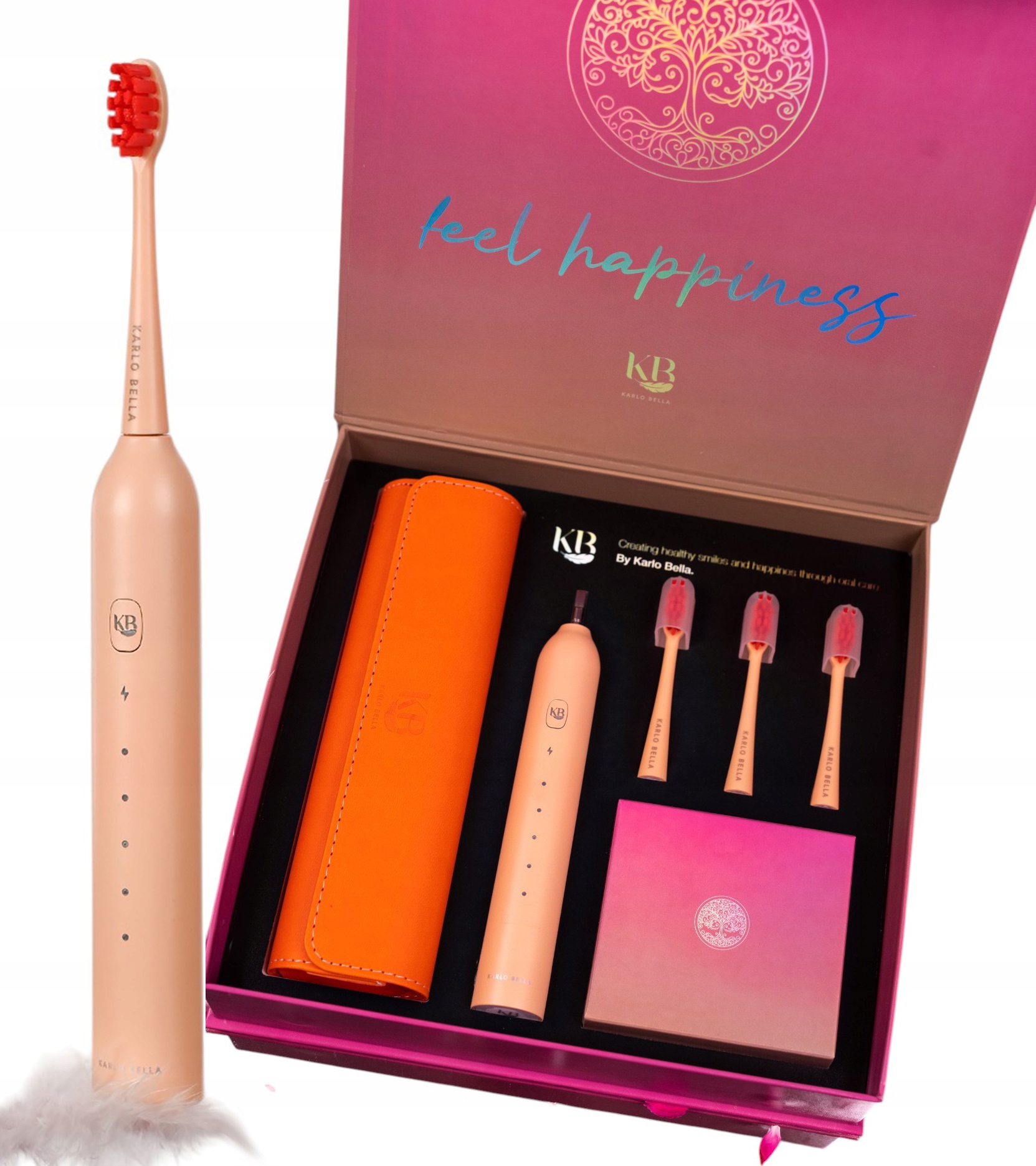 Karlo Bella - це більше, ніж пристрій - це вираження стилю та індивідуальності. Доступна в чотирьох гармонійних кольорах, зубна щітка ідеально відображає філософію бренду: усвідомлена турбота про тіло та душу. Ергономічна тонка форма та шовковиста поверхня забезпечують винятковий комфорт використання - зубна щітка ідеально лежить у руці та надзвичайно легка.