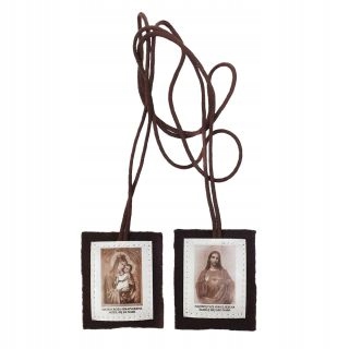 Кармелітський шкапулярій складається з двох шматків коричневої вовняної тканини.