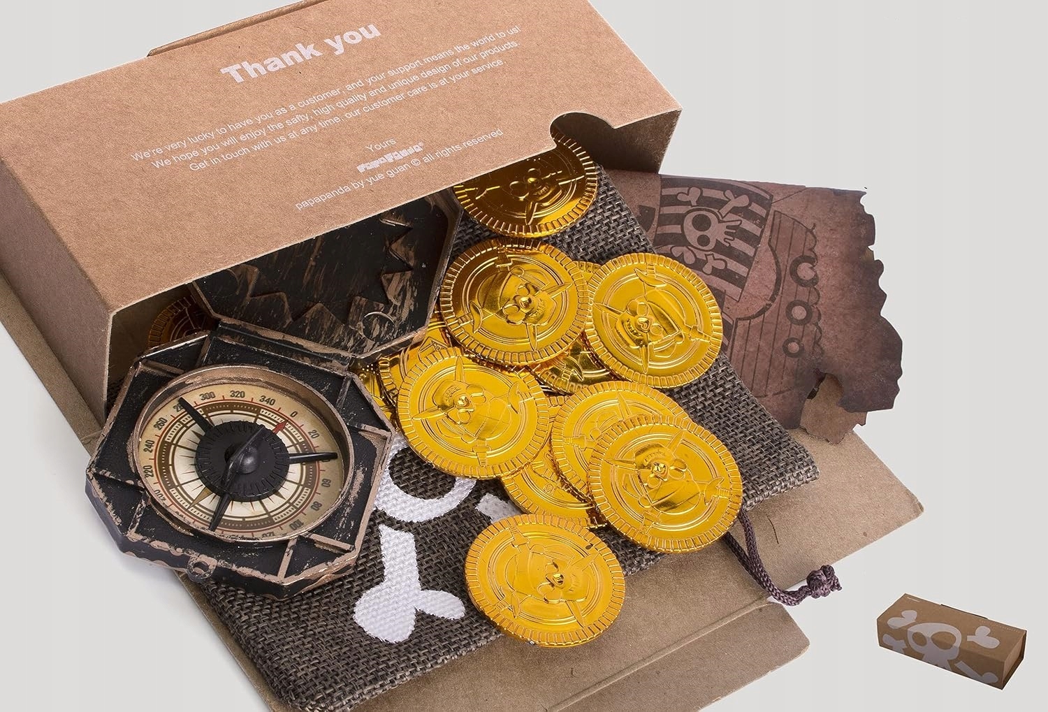 Упаковка цього набору з мішком із золотими монетами та компасом та карта доставляється в коробці. Упаковка була спеціально розроблена з мотивом черепа.