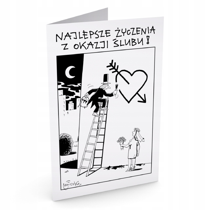 ВЕСІЛЬНА ВІТАЛЬНА ЛИСТІВКА З КОНВЕРТОМ СЕРДЕЦЬ - ДРАБИНКА З МАЛЮНКОМ АНДРЖЕЯ МЛЕЧКИ
