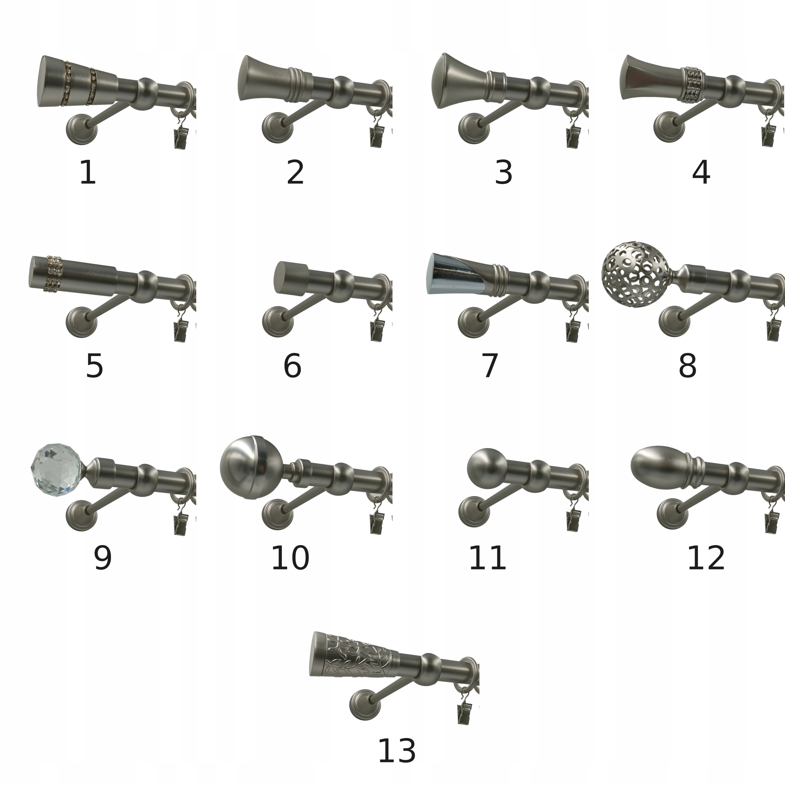 KARNISZ METALOWY LUX 19mm galwanizowany SATYNA 120cm MIX KOŃCÓWEK