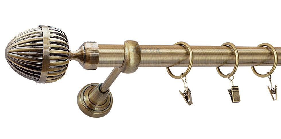 Карниз одинарний з колекції Modena з діаметром труби 25 мм. Карнизи повністю виготовлені з металу, покритого гальванічним покриттям і шаром лаку, який підвищує стійкість до стирання.