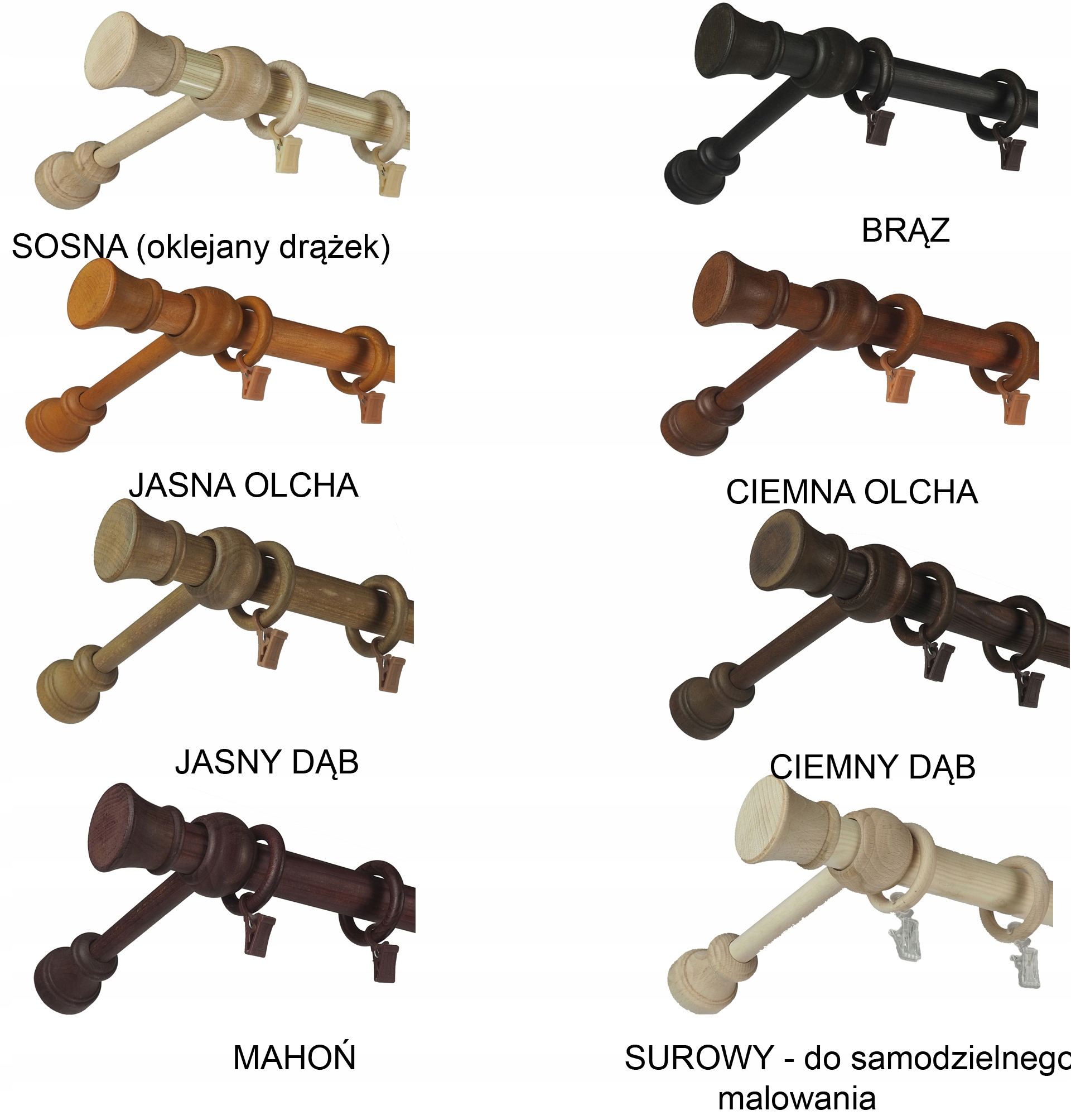*Кольори сосна та бук складаються із прутів, покритих термозбіжною плівкою, інші кольори пофарбовані морилкою на водній основі.