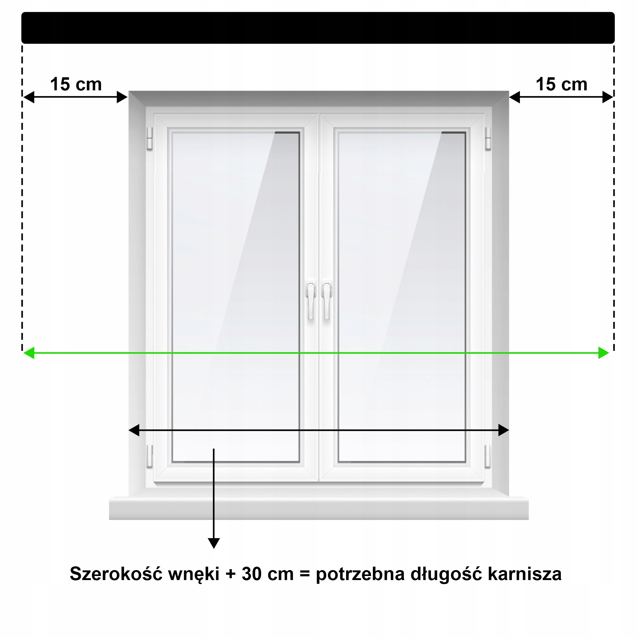 Щоб правильно підібрати довжину карниза для штор, виміряйте відповідно до схеми нижче. Ми рекомендуємо, щоб загальна довжина карниза була на 30 см більша за ширину віконної ніші - це означає, що карниз буде виступати за край виїмки на 15 см з кожного боку. Наприклад, для віконної ніші шириною 300 см знадобиться карниз довжиною 330 см.