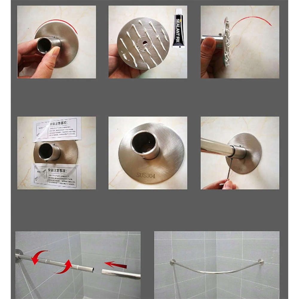 Модернізована нержавіюча сталь преміум-класу, стійка до корозії та сонячного світла, не іржавіє та ніколи не руйнується, протиковзка, проста у використанні та чищенні. Досить міцний, щоб утримувати штори для душу, віконне покриття, одяг та інші речі, вантажопідйомність до 10 кг.