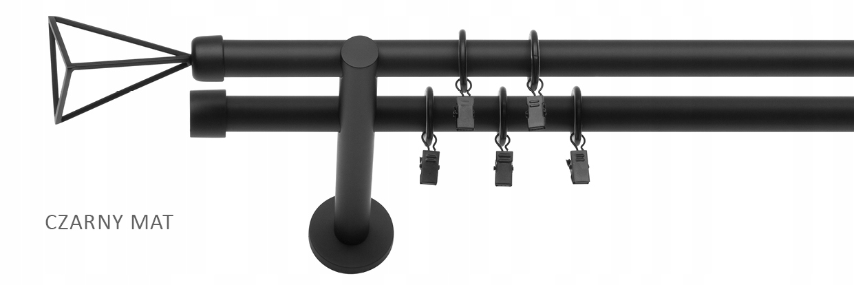 КАРНИЗ ДВІЙНИЙ 220 СМ 19+19 ММ МАТОВИЙ ЧОРНИЙ МАТОВИЙ БІЛИЙ ВИБІР ТОРЦІВ RENA