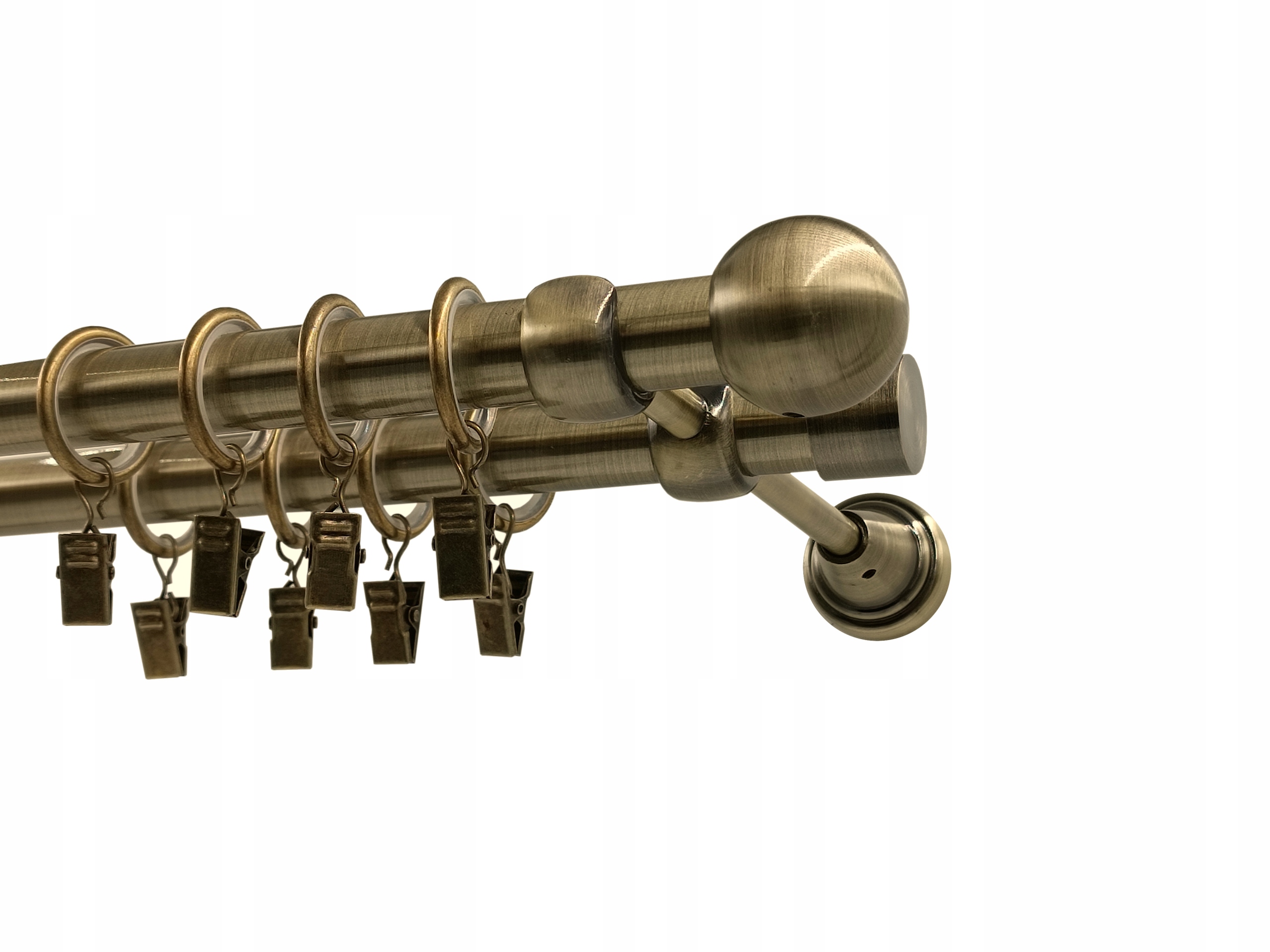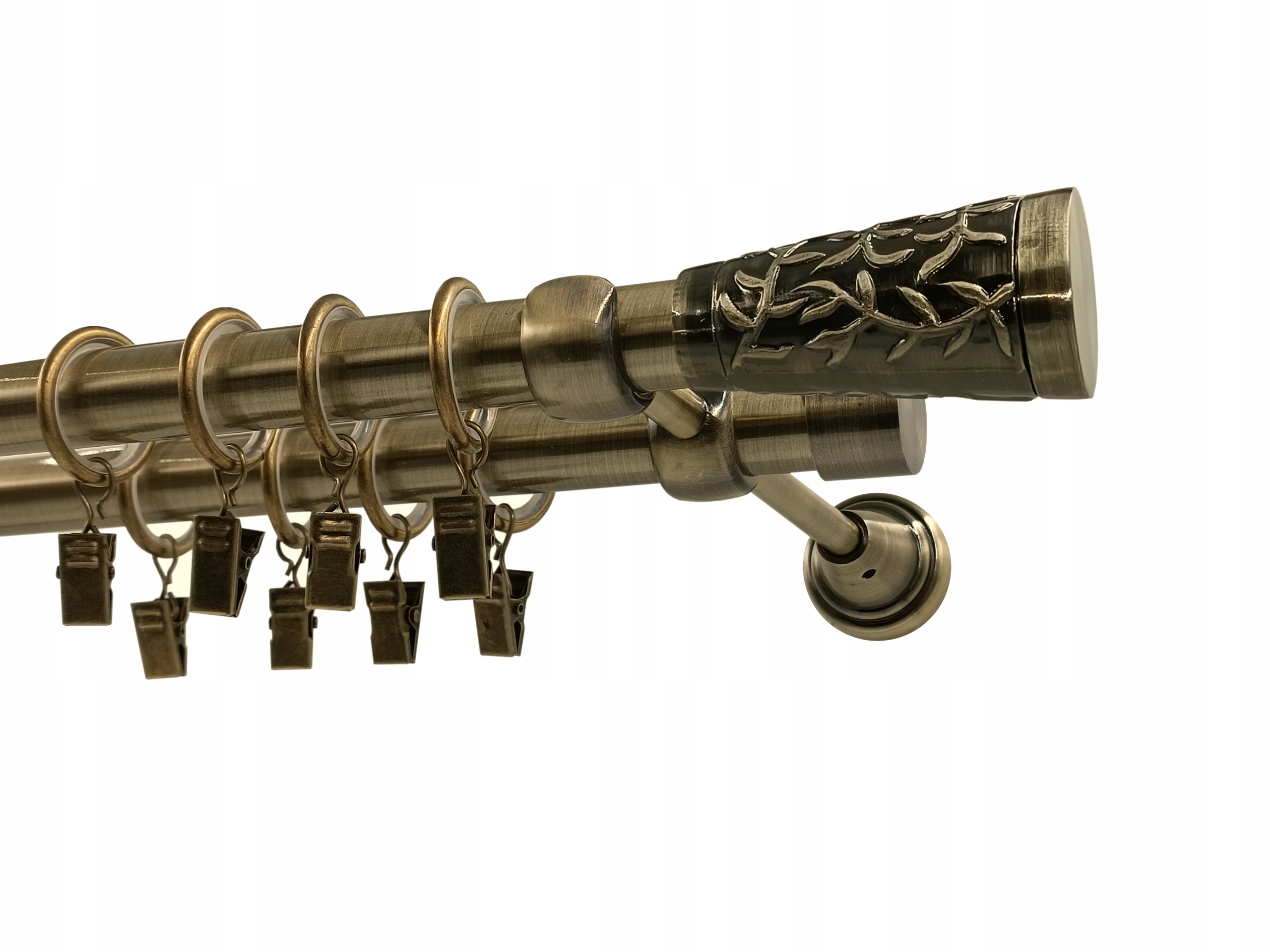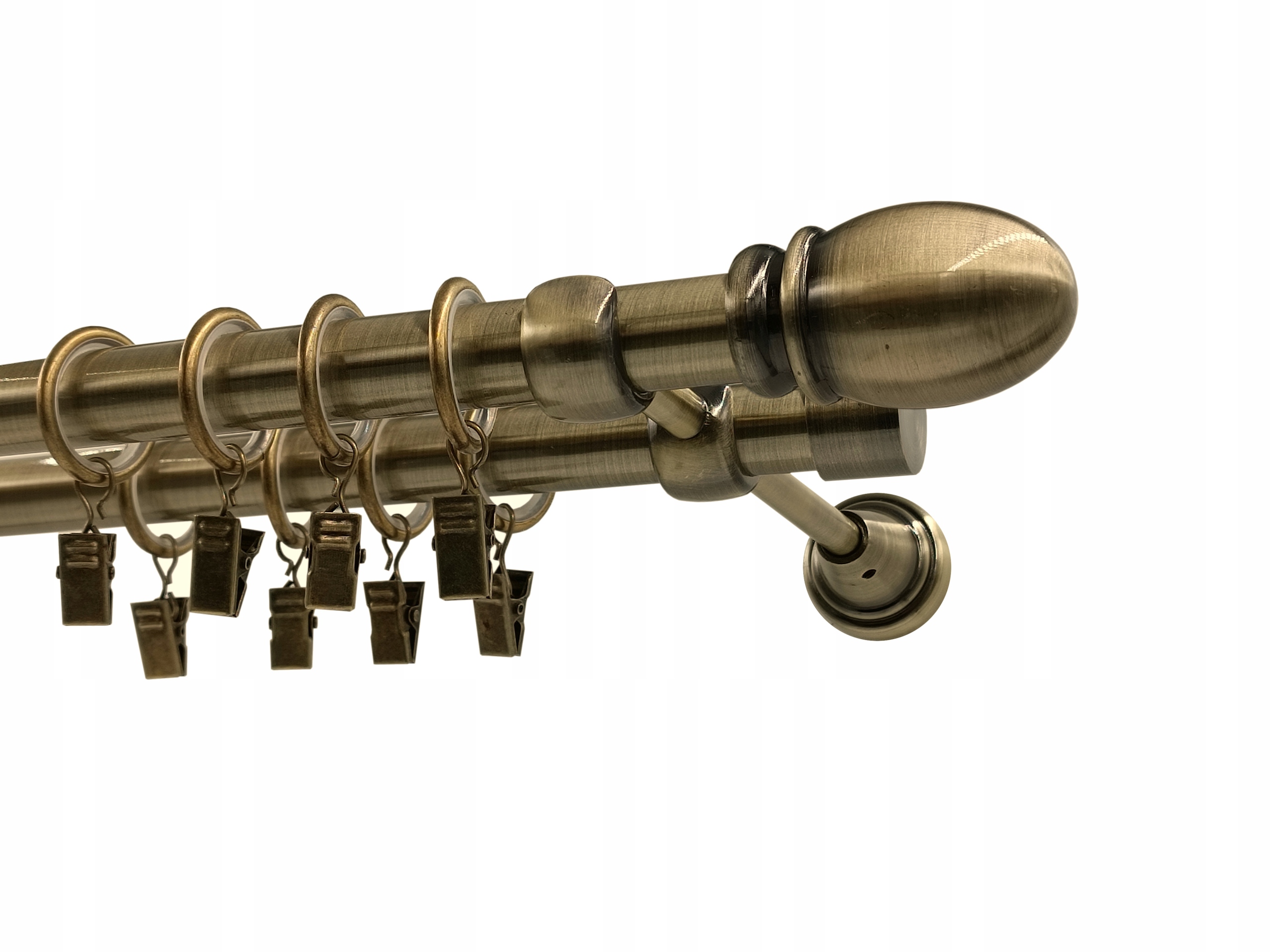 На даному аукціоні Ви купуєте КАРНИЗ ДВІЙНИЙ МЕТАЛЕВИЙ діаметр труби 19+19мм колір АНТИЧНЕ ЗОЛОТО довжиною 180см з вибраним наконечником.