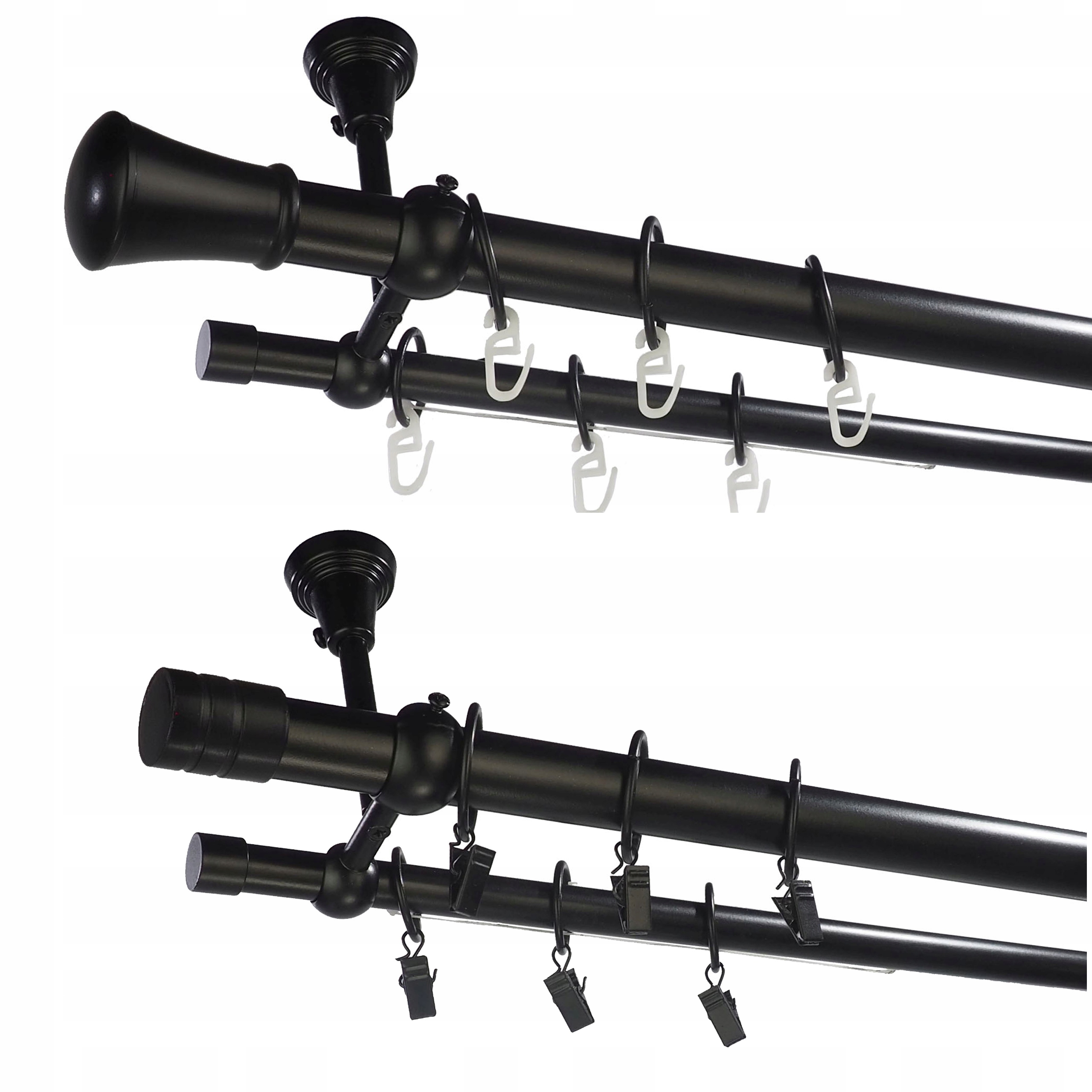У нас ви можете зібрати незвичайний кольоровий набір, наприклад, чорний карниз з атласними жабо та закінченнями.