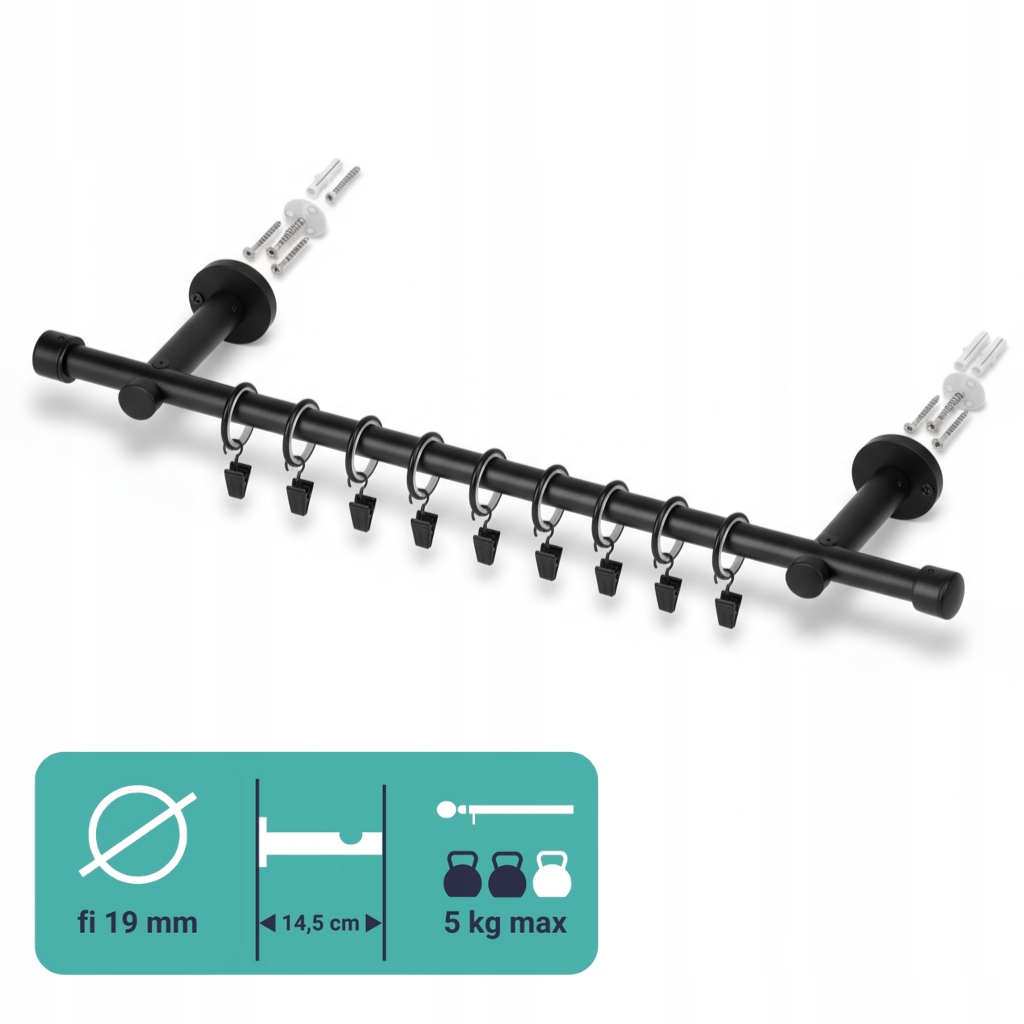 КАРНИЗ ОДИНАРНИЙ 200 СМ 19 ММ ЧОРНИЙ МАТ LUNA БЕЗШУМНІ КРУЖЕЧКИ ДЛЯ ЖАБКИ