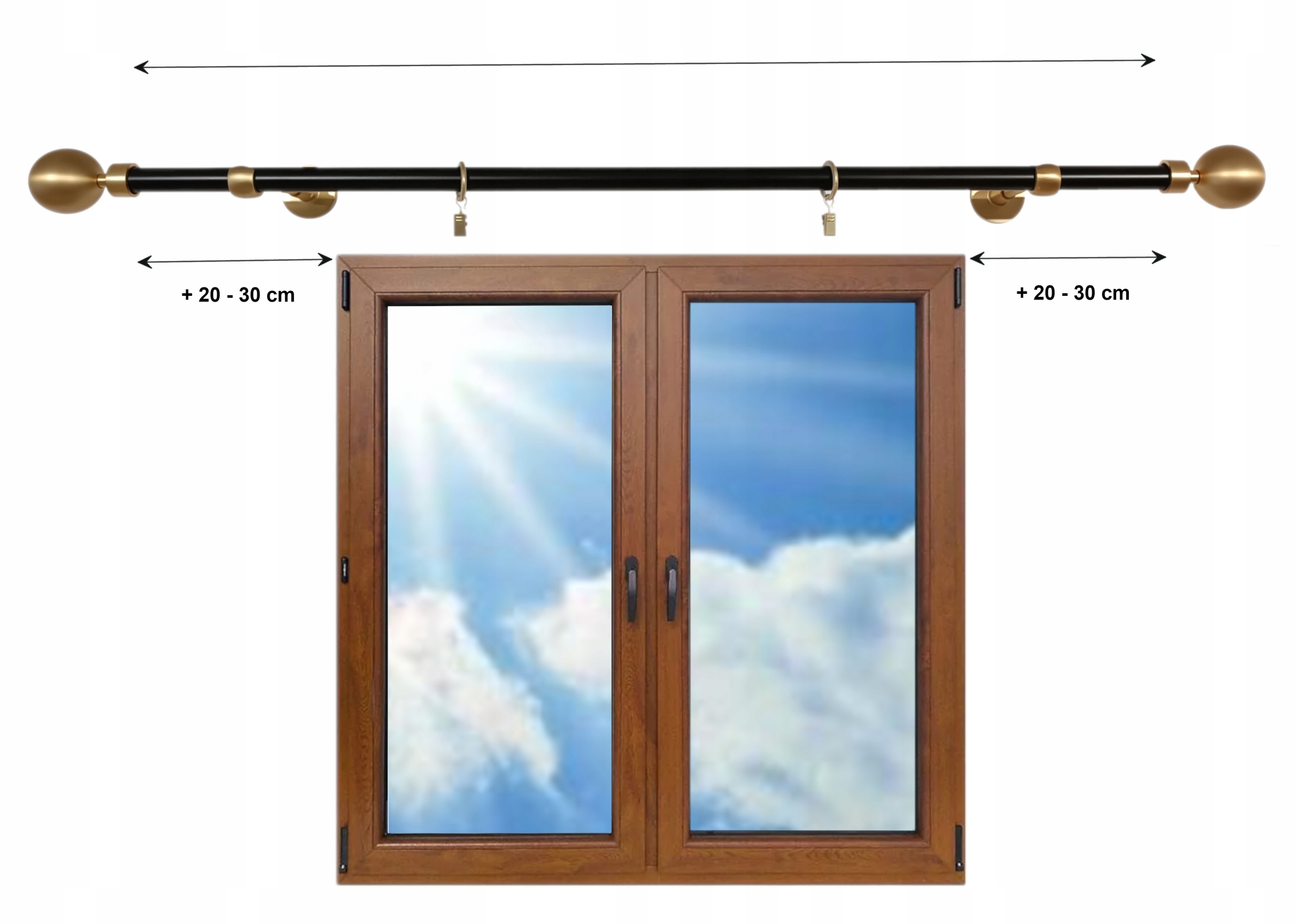 Як правило, діє правило, що карниз повинен бути довшим за віконну нішу приблизно на 20-30 см з кожного боку вікна (загалом приблизно на 40-60 см), завдяки чому можна буде легко розсунути підвішені тканини за віконне світло. Під час монтажу кронштейни карнизів слід розташувати на відстані приблизно 10-12 см від бічного краю вікна.