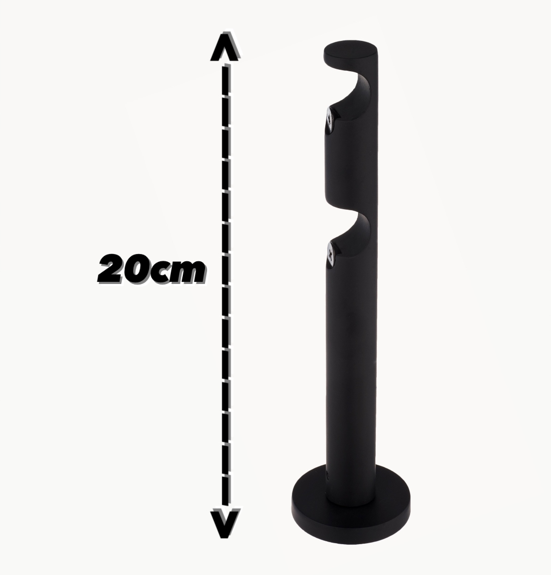 Сучасний подвійний чорний матовий карниз 19мм + 19мм з безшумними кільцевими циліндричними кінцями виділяється з-поміж інших кольорів тонкою оксамитовою гладкою поверхнею. Серія чорних карнизів з матовим покриттям складається з кількох мінімалістичних закінчень без будь-яких хромованих або глянцевих елементів. Дизайнери цих карнизів дозволили зробити сам колір і його вишуканий ефект окрасою. Ця ідея виявилася стовідсотковою.
