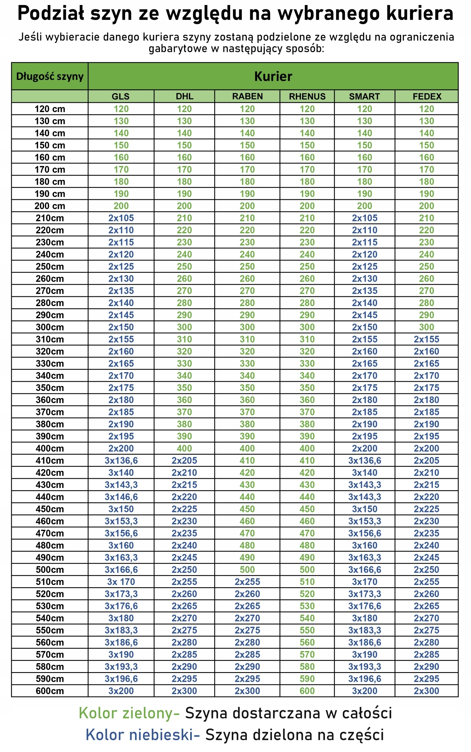 – Рейка доступна в максимальній довжині. 600 см з можливістю вкорочення та виготовлення комплектів карнизів під індивідуальне замовлення