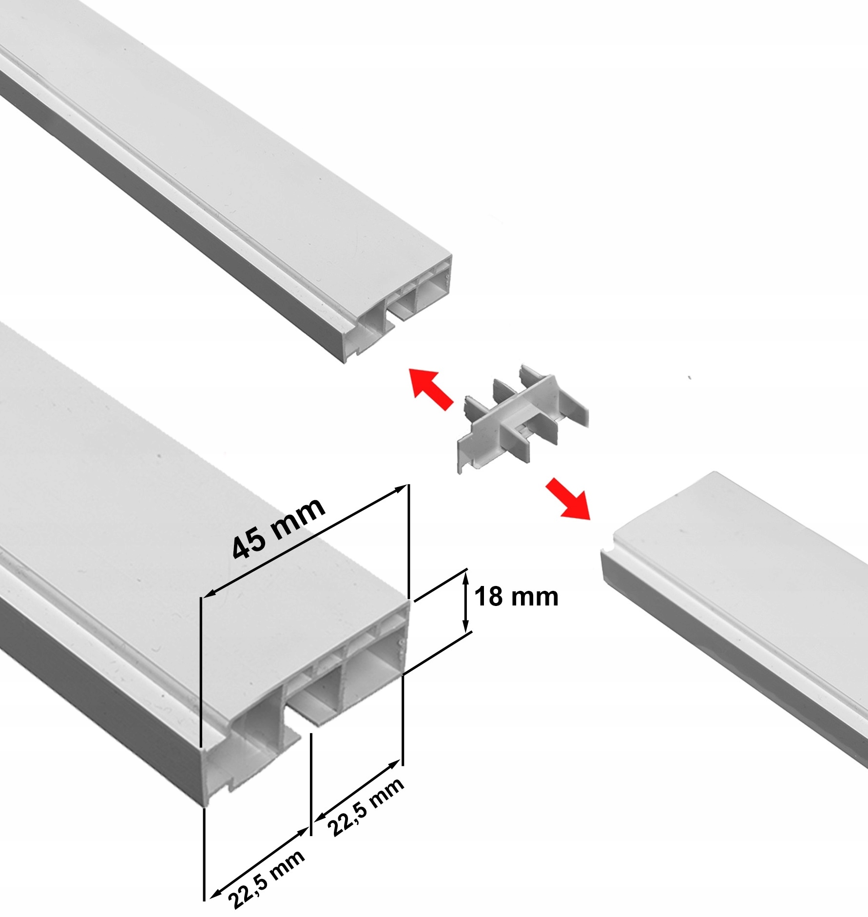 - Плавне ковзання штор: карнизи довжиною понад 250 см розділені на дві рівні частини, з’єднані з’єднувачем , який забезпечує дуже плавний рух жаб і непомітний, створюючи враження одного карниза.