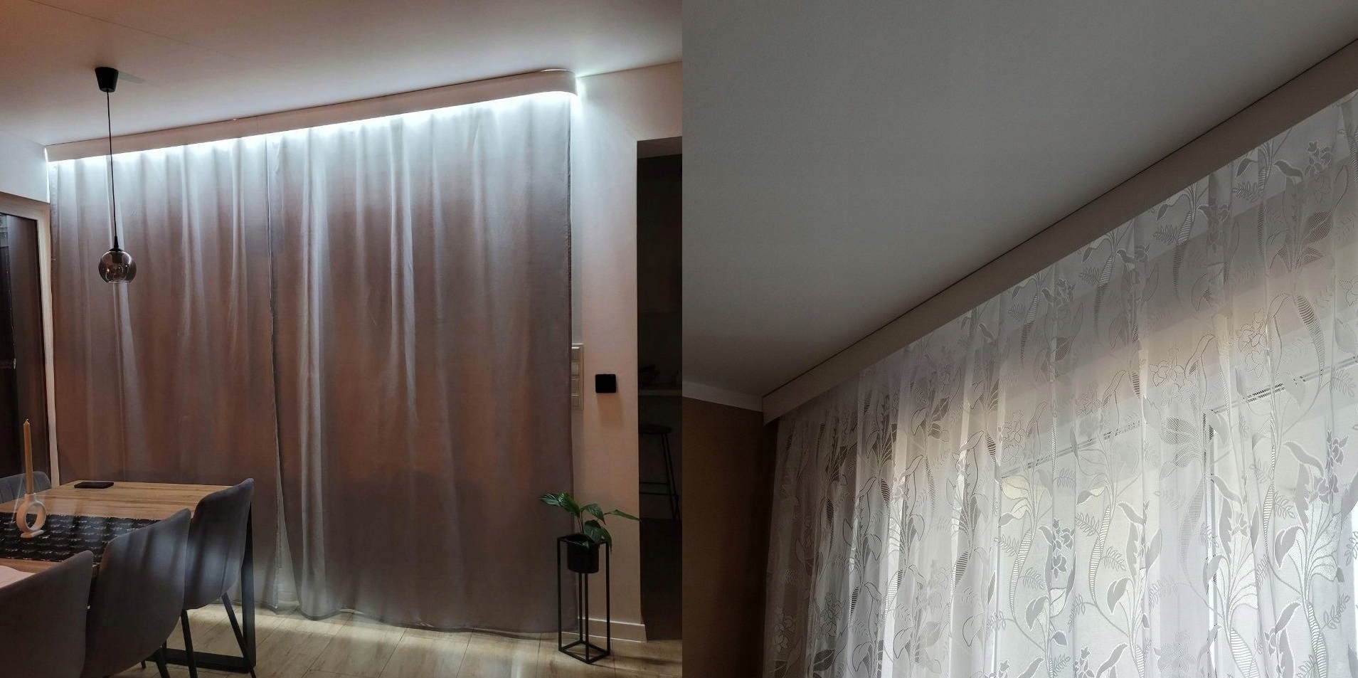 - Чохол відправляється в рулоні. Перш ніж прикріпити карниз до стелі, його слід розправити