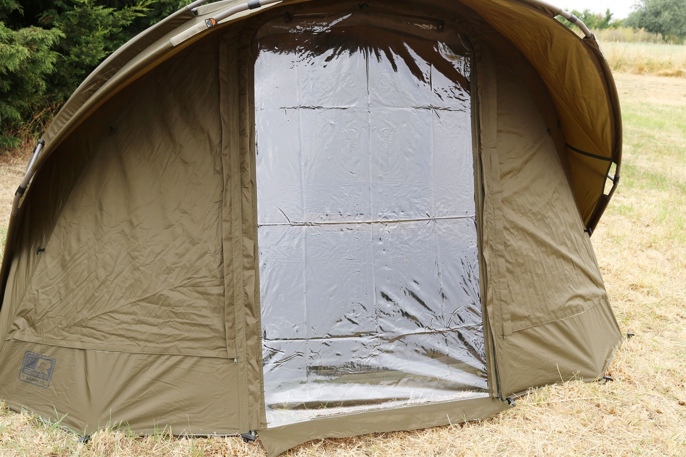 Одномісна палатка Fox. Він виготовлений з міцного дихаючого матеріалу з водонепроникністю 10 000 мм. Основою конструкції є три штанги з розпірками, які виготовлені з міцного алюмінію діаметром 19 мм. Намет має великі панелі протимоскітної сітки спереду та ззаду, що забезпечує хорошу вентиляцію в спекотні дні. Двосторонні двері доступні в трьох варіантах - москітна сітка, прозорий ПВХ і масивний матеріал. Намет також має досить великий навіс, який дуже корисний у дощові дні, оскільки ви можете сидіти з відкритими дверима. Також на даху є дві стрічки-липучки для вудок. Намет можна дуже добре натягнути незалежно від умов, оскільки він також має регульовані натяжні ремені. Усередині намету є кріпильні кільця для кріплення капсули москітної сітки, яка запобігає проникненню комах всередину - капсулу можна придбати окремо. У набір також входить міцна підлога, високі підбори та міцна велика сумка для транспортування.