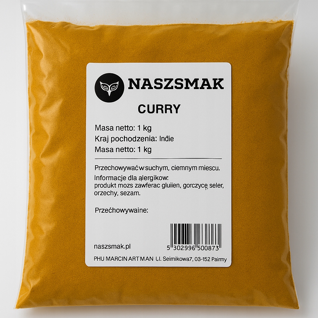 Спеція каррі від Nasmak - це ретельно складена суміш ароматичних спецій, яка надає страви неповторному, інтенсивному смаку та красивому кольорі. Продукт, упакований у практичну, тісну упаковку 1 кг - ідеально підходить як для домашнього використання, так і для гастрономії.
