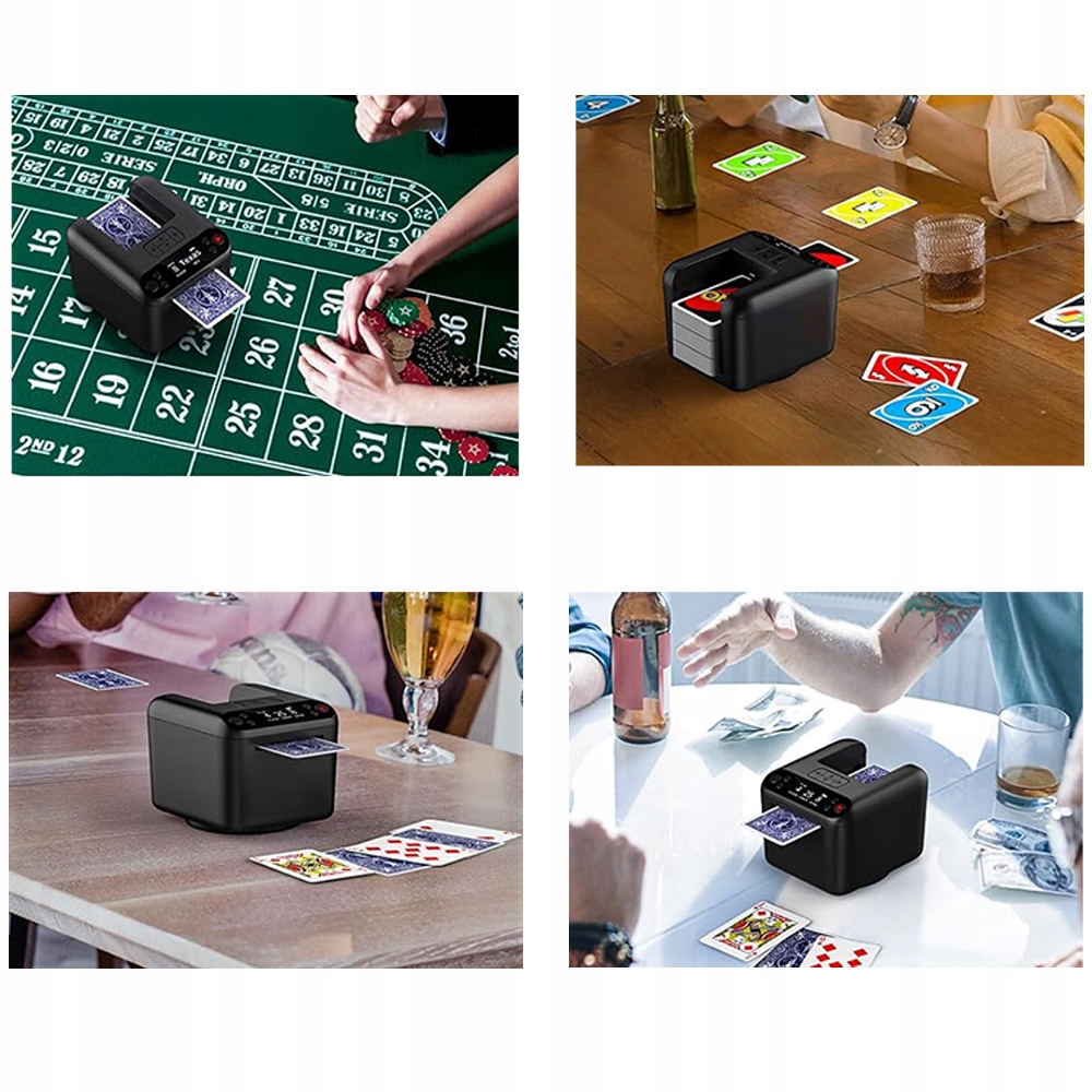 Компактний дизайн для зручного носіння, з місцем для трьох колод карток для кращої сумісності з грою. Пристрій оснащено функцією моделювання змішування (імітує ефект змішування шляхом випадкової роздачі карт) і має акумулятор ємністю 4000 мАг, тому пристрій залишається готовим до тривалих ігрових сесій.