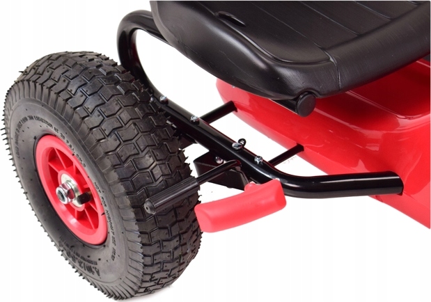 Міцна сталева конструкція, гумові надувні колеса, колеса з шарикопідшипниками, ручне гальмо та «нейтральна» передача.