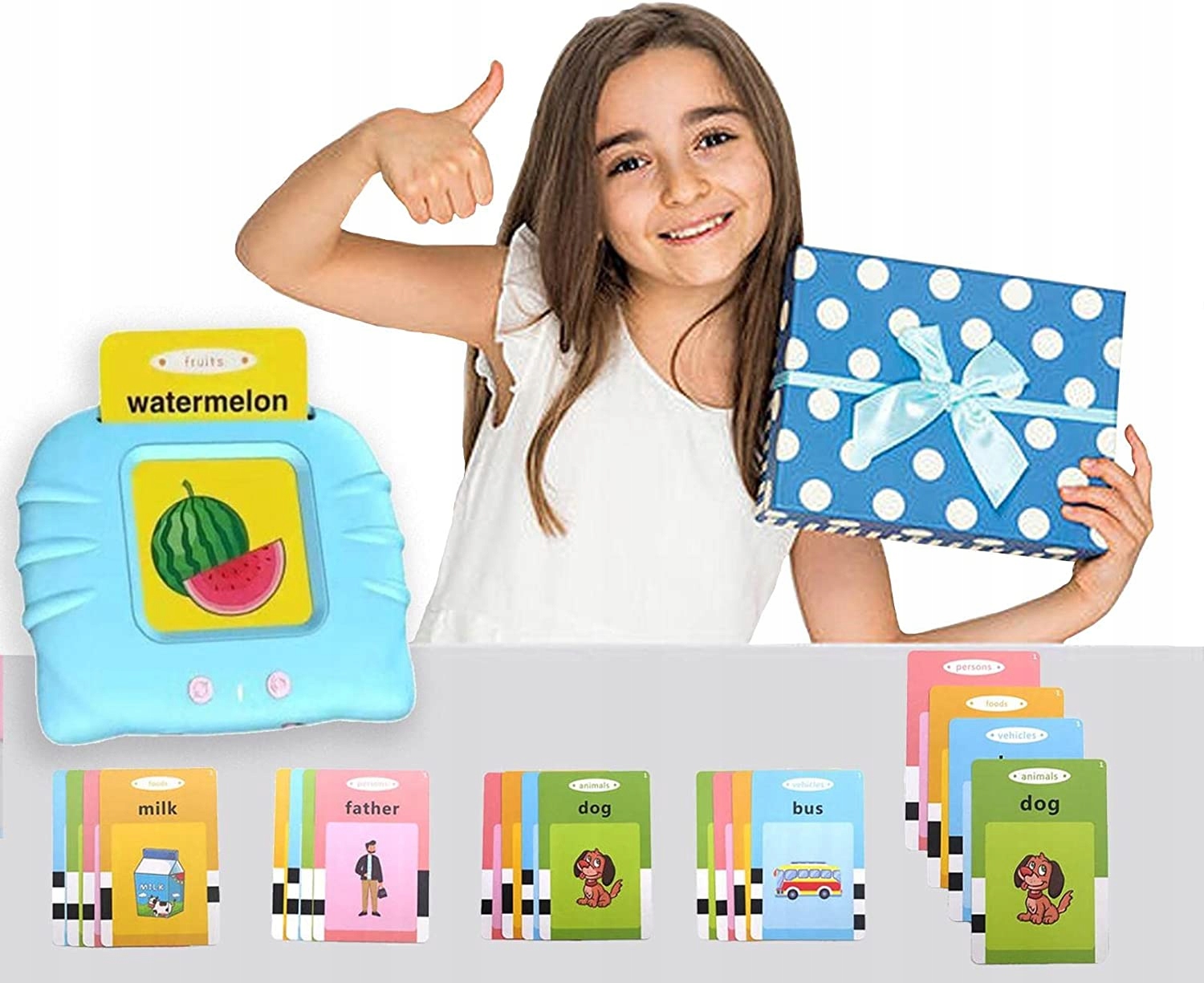 У набір входять: картки зі словами та іграшка, яка повторює слова вголос.