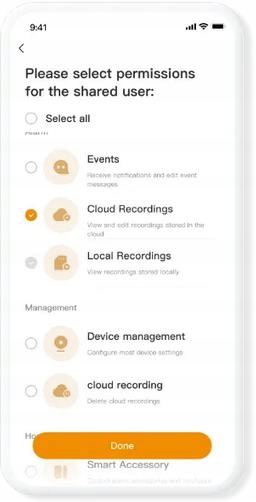 Поділіться своїми правами керування пристроєм з більшою кількістю членів родини чи друзів. Завдяки Imou Protect ви можете ділитися сповіщеннями, записами в хмарі та керувати пристроями, підключеними до програми, до 10 осіб.