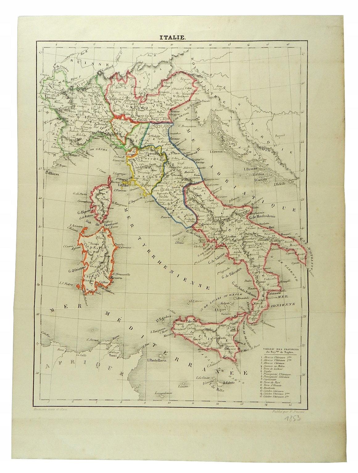 Карта Італії - Париж 1853