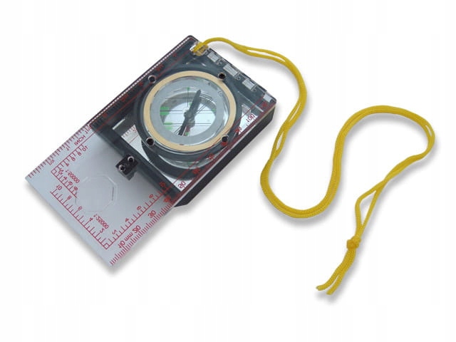 Компас має кришку, що відкривається, із дзеркалом та шкалою.