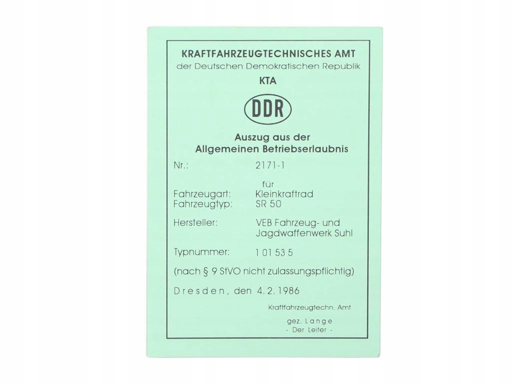 Karta pojazdu simson sr50 de MotoGeneric