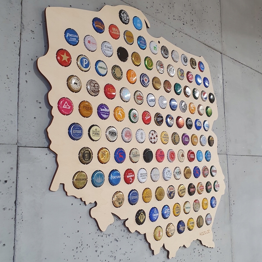 Карта ПОЛЬЩІ на пивних кришках дошці колекції пива