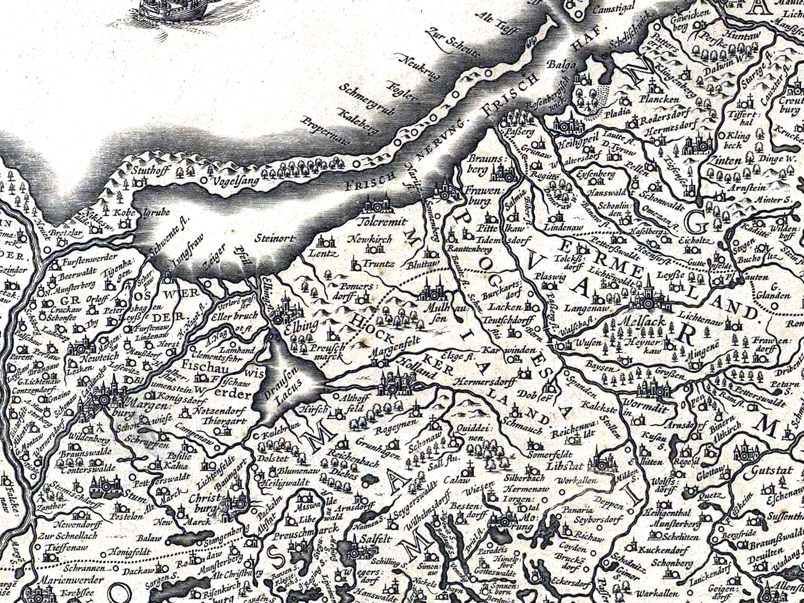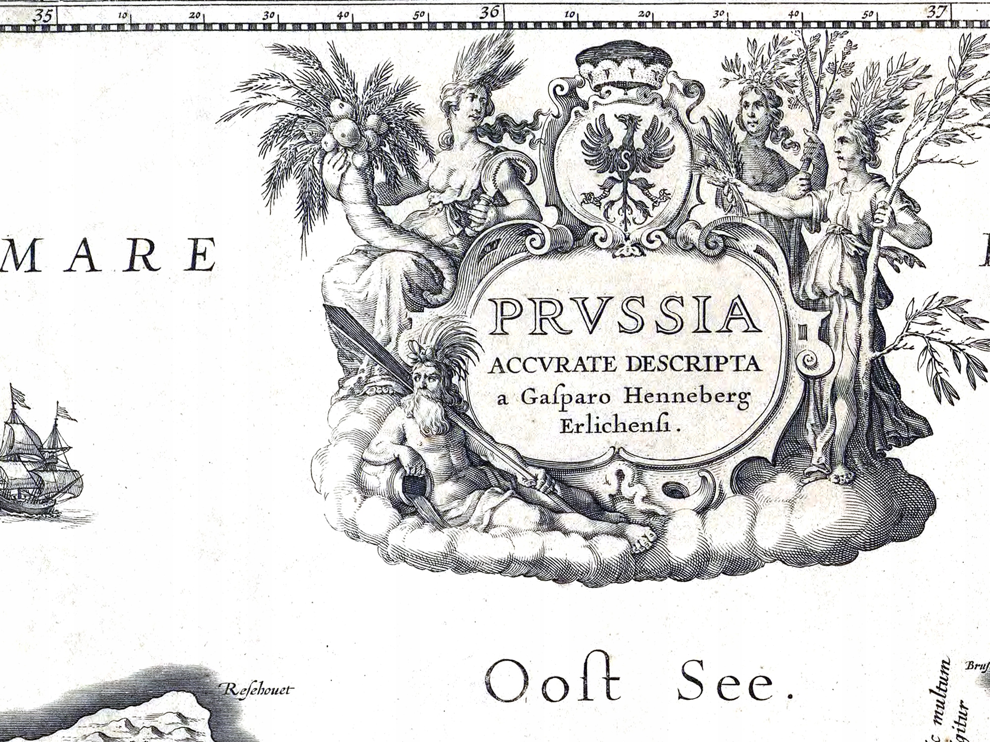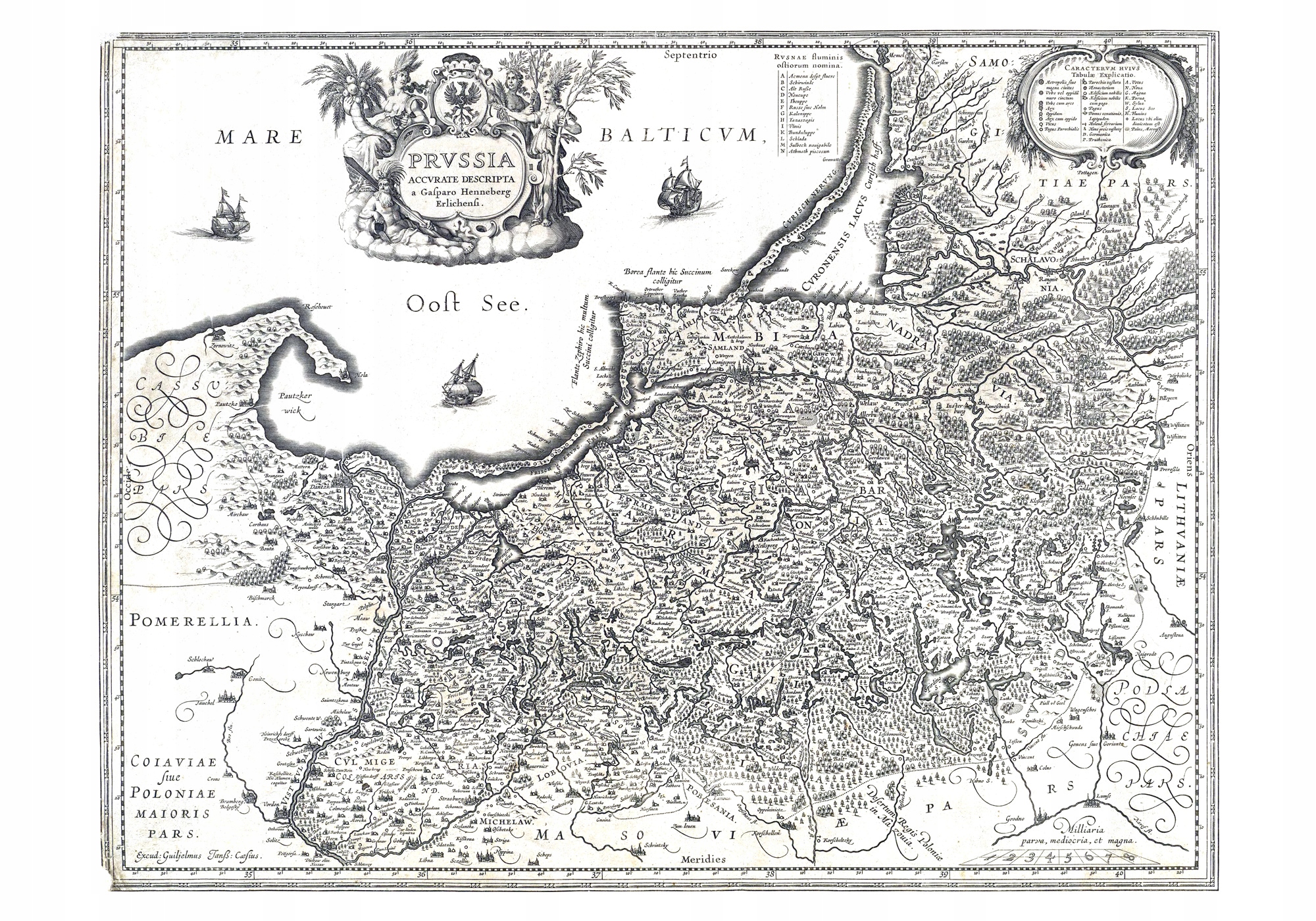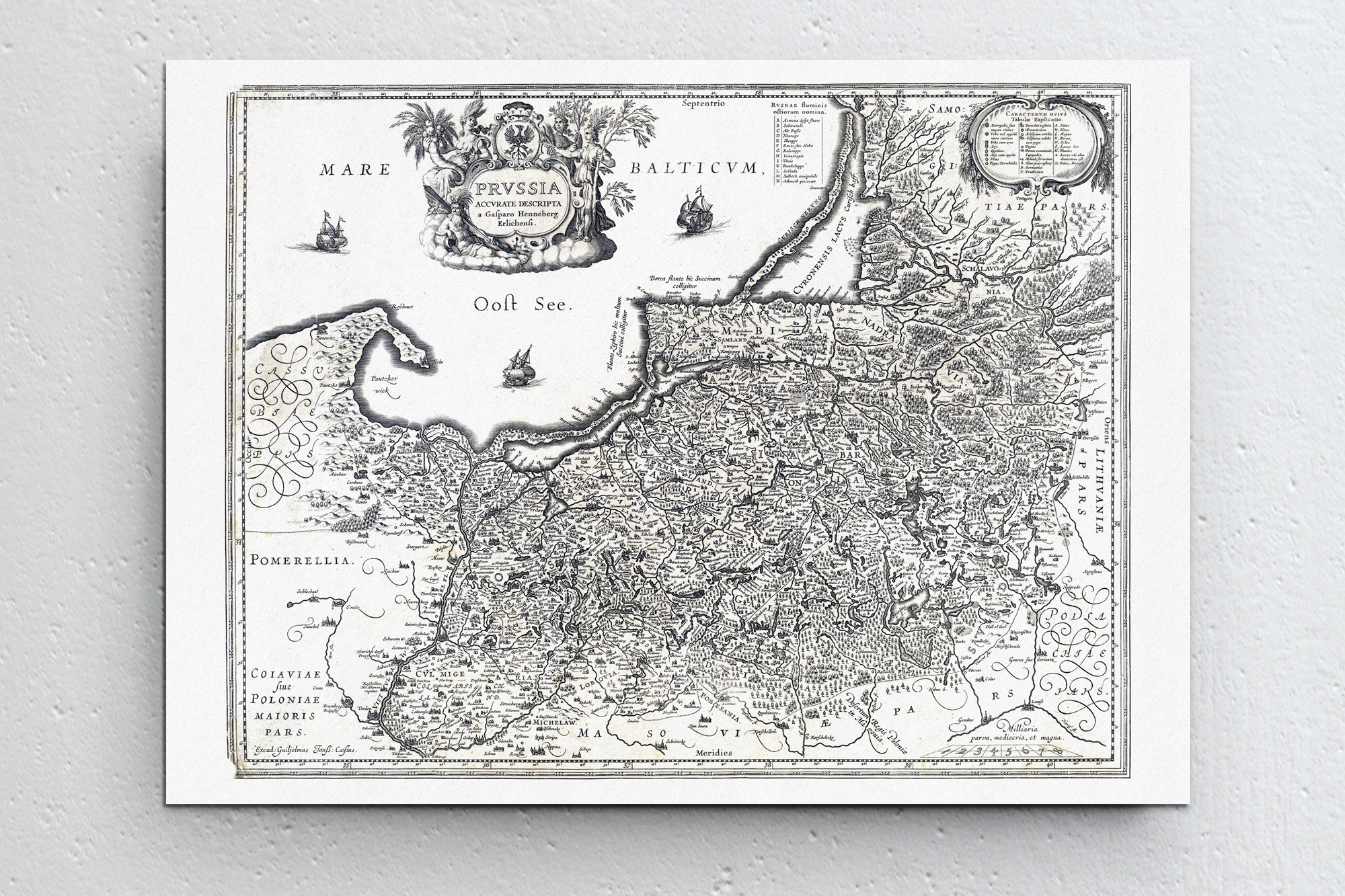 Відтворення карти Східної та Західної Пруссії - "Пруссія точний опис" - з 1649 р. Каспар Хеннебергер, видавець та співпраці Guiljelmum Blaeuw. Оригінальна карта розташована в музеї замку в Мальборк