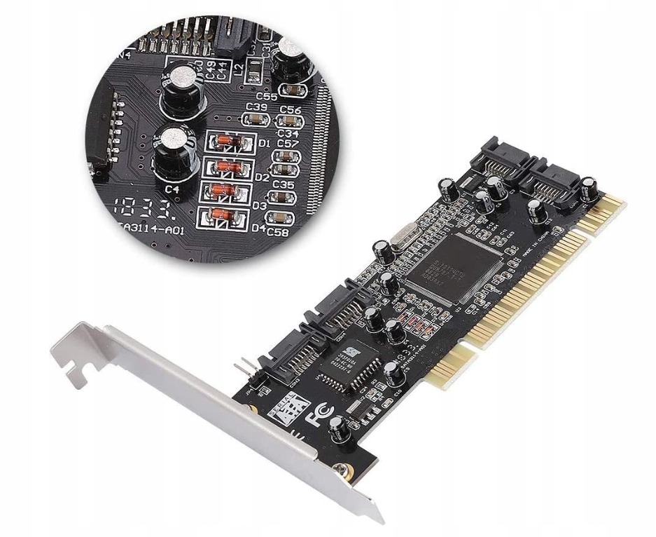 Карта розширення для настільних комп'ютерів на шині PCI з чіпсетом American Silicon Sil3114, завдяки якій можна розширити інтерфейс SATA на 4 порти, щоб можна було підключити ще 4 пристрої з інтерфейсом SATA