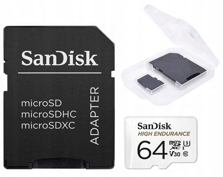 Карта SanDisk High Endurance microSDXC 64 ГБ V30 100 МБ/с біла + APAPTER