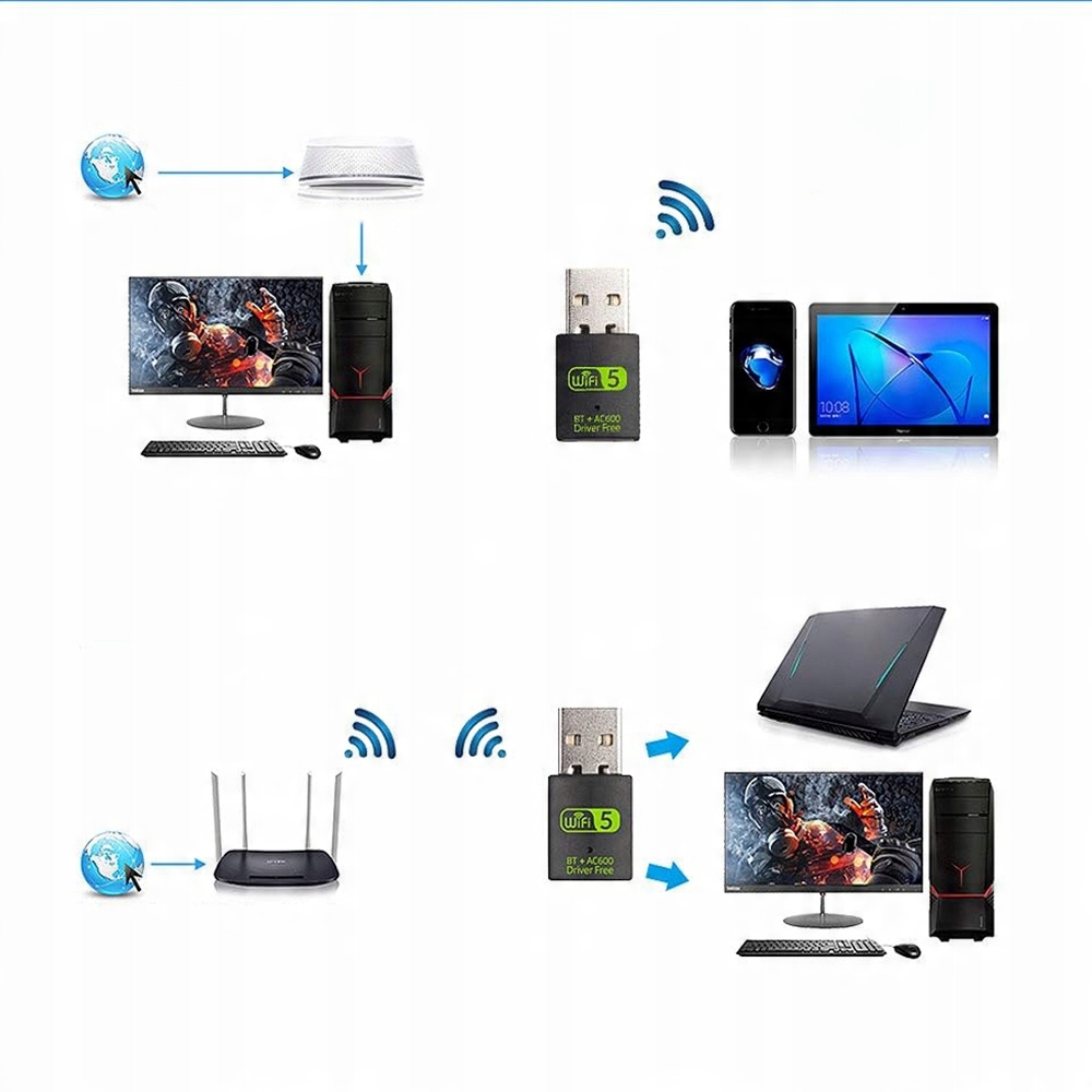 КАРТА SIECIOWA WIFI BLUETOOTH USB 600 Мбіт/с