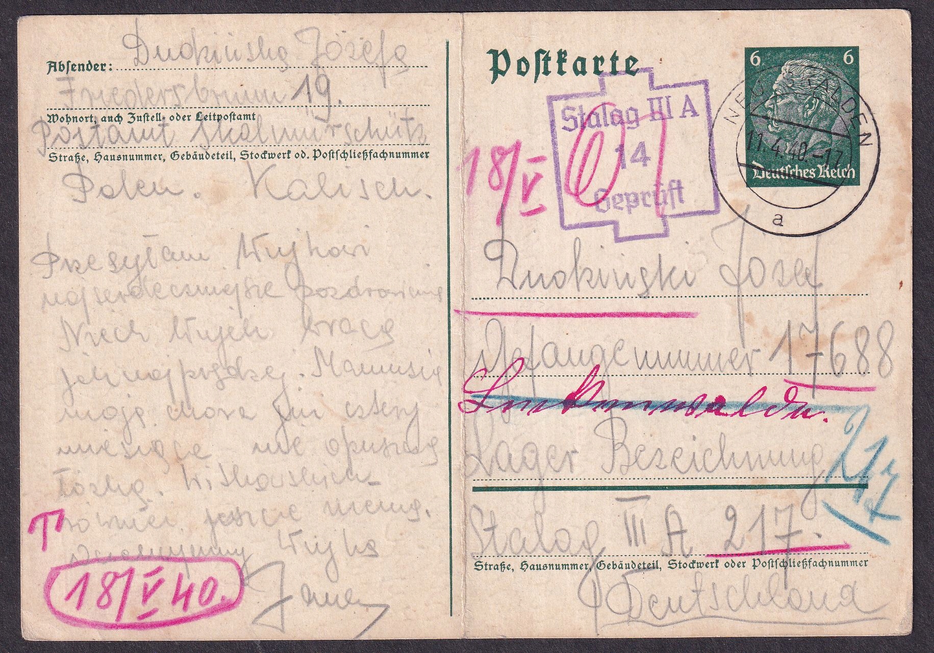 Карта Stalag IIIA Luckenwalde відправила Нове Скальмежице до табору 1940(97)